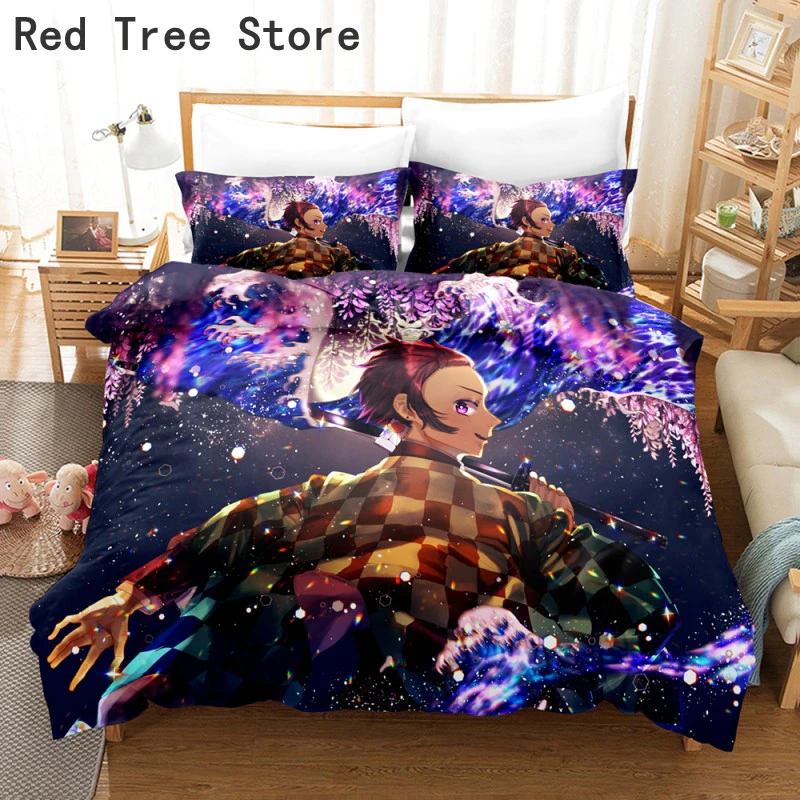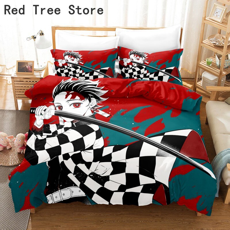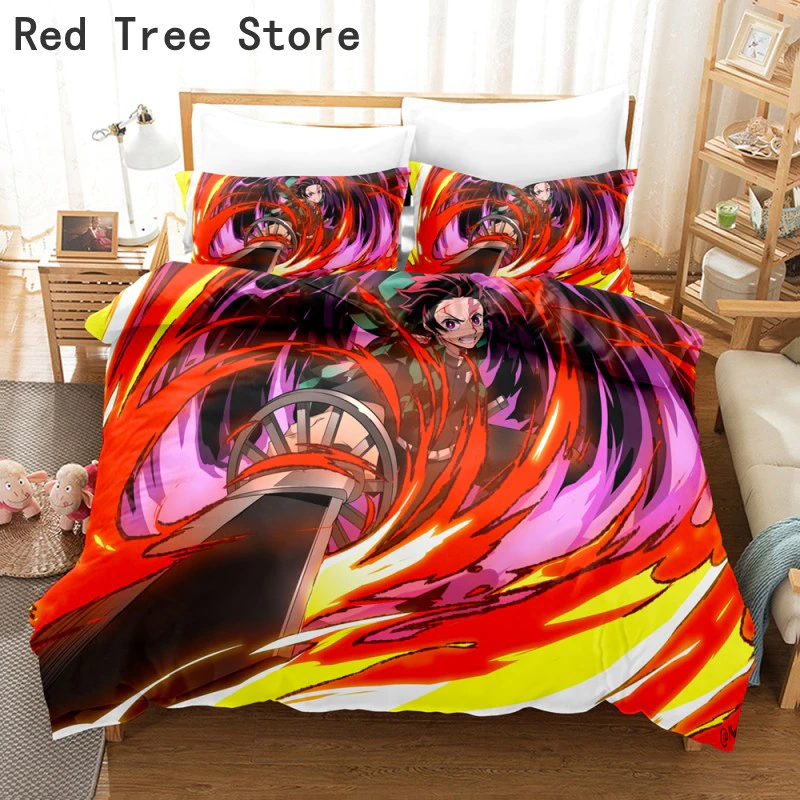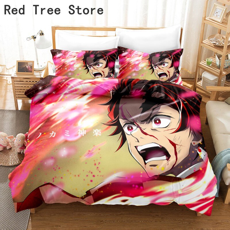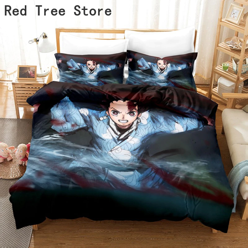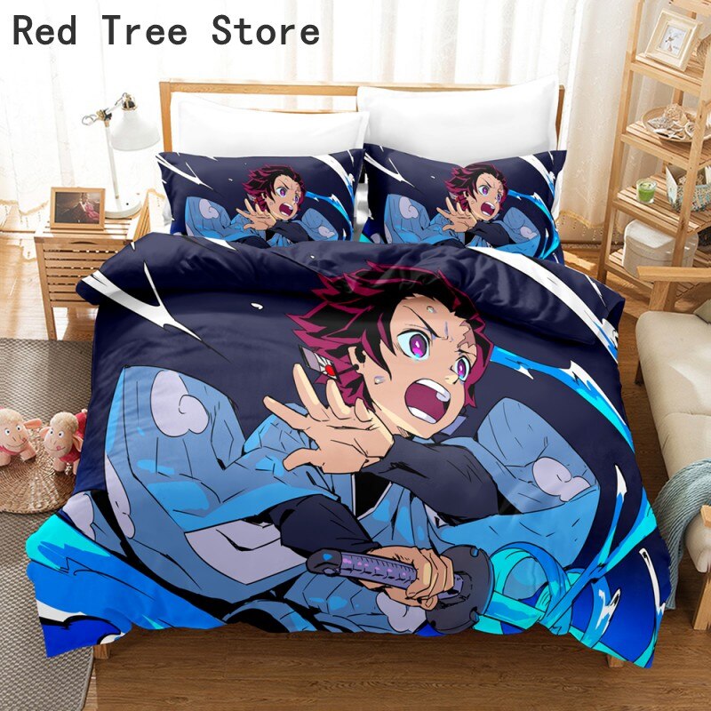 2/3 Pieces Cartoon Demon Slayer Bedding Set 3D Print Japan Anime Duvet Cover Bedroom Decor Wiith Pillowcase Boy Gift