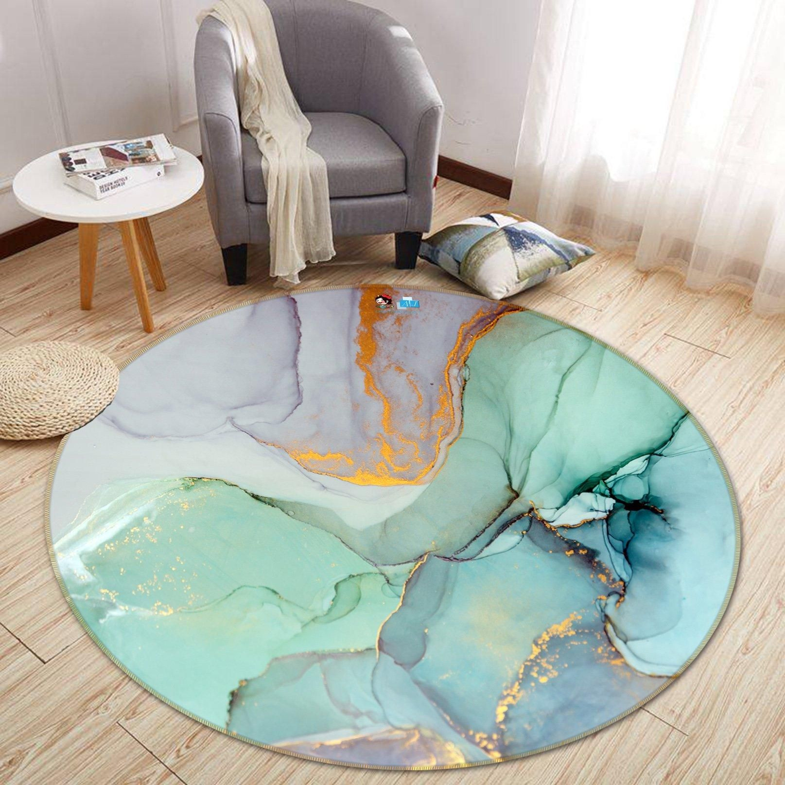 3D Green And Purple Marble 373 Round Rug – Round Carpet Home Decor