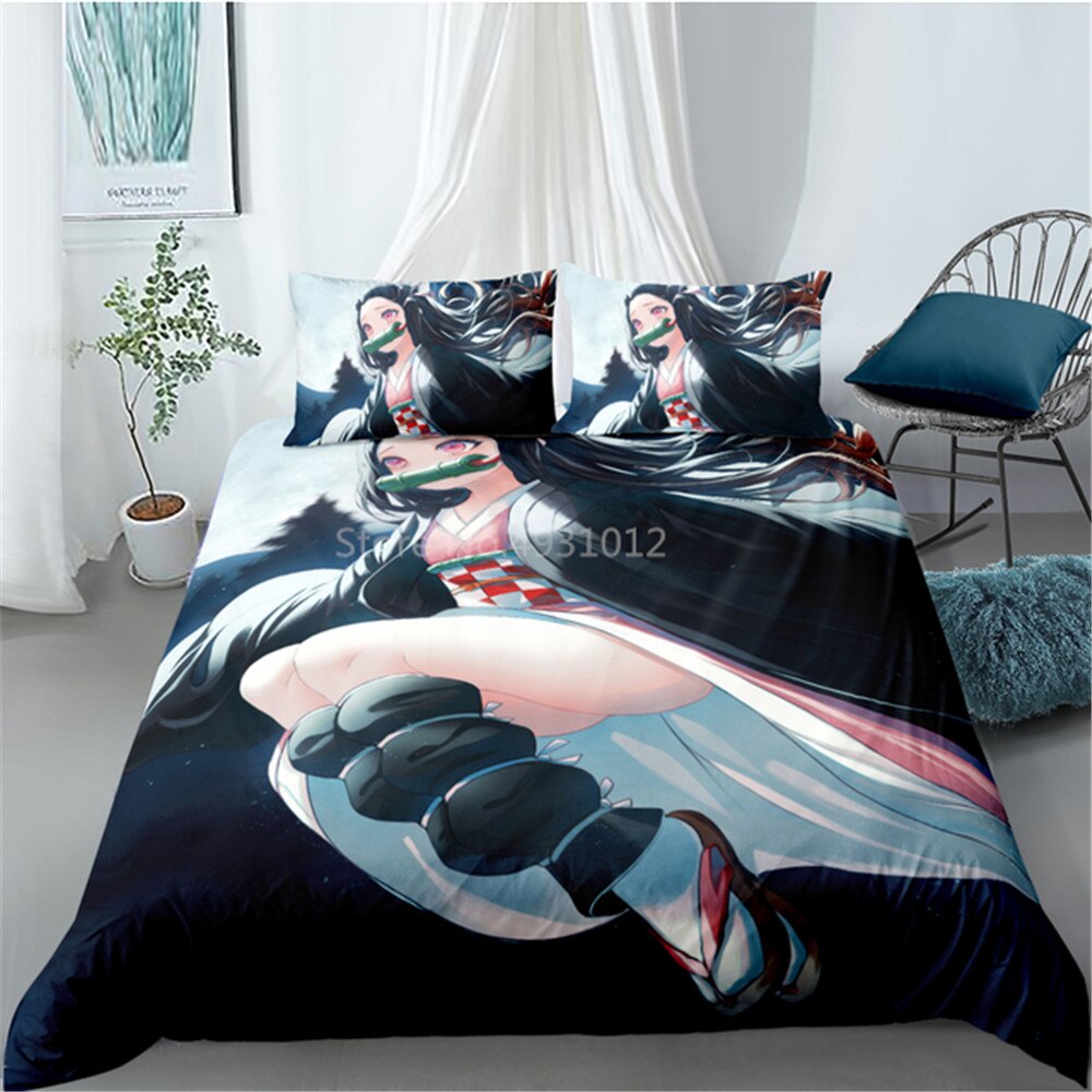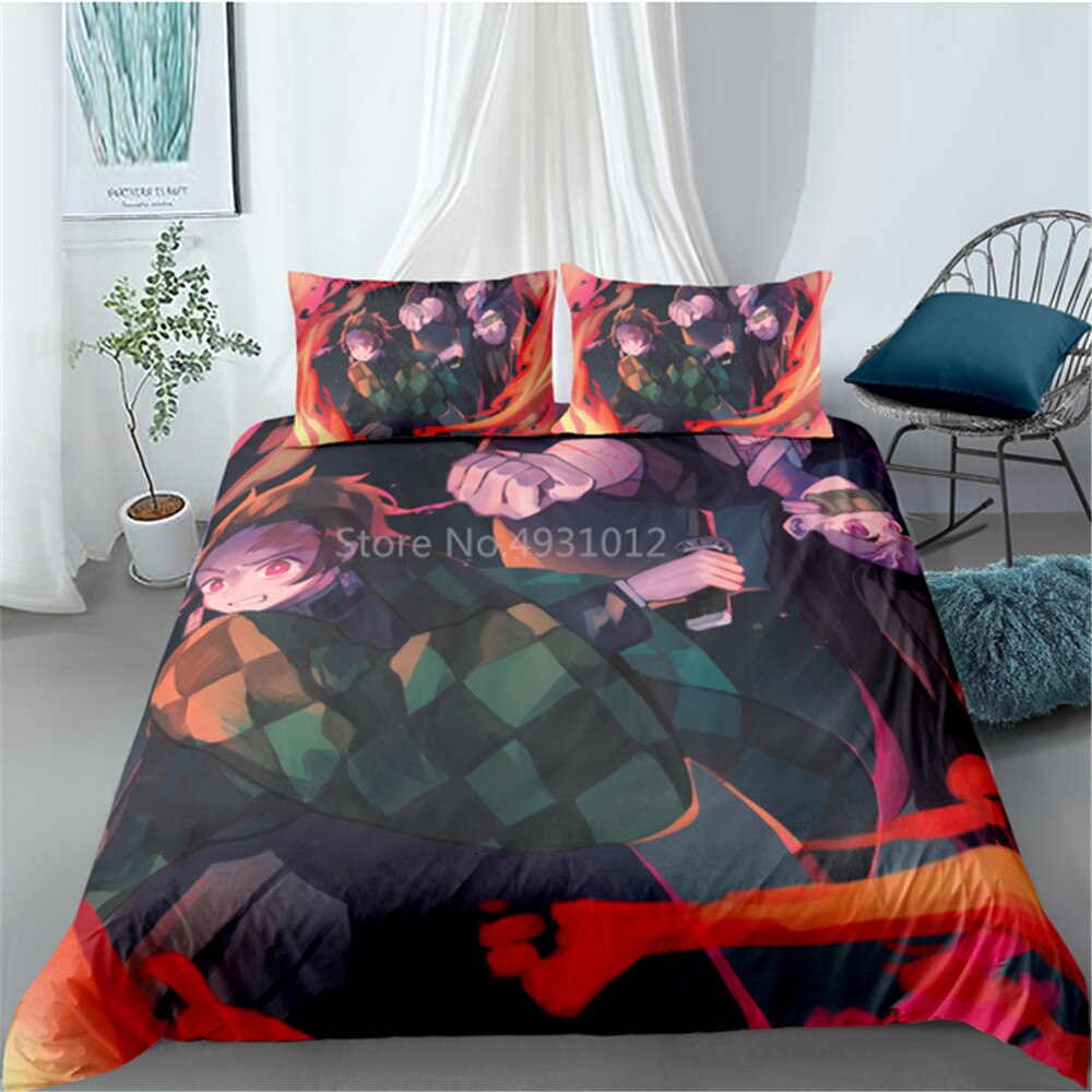 3D Japanese Anime Cartoon Character Printed Demon Slayer Bedding Set Queen King Size For Adults Boy Gift With Pillowcases Duvet Covers