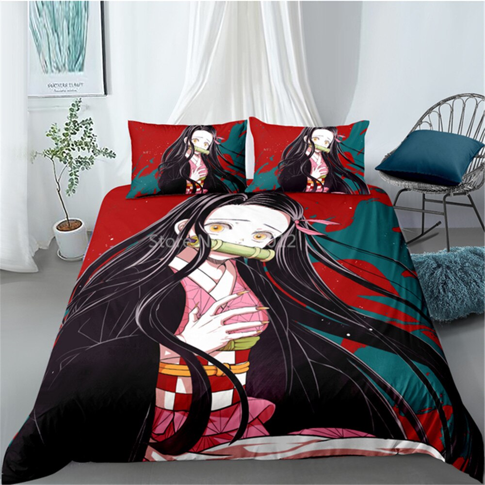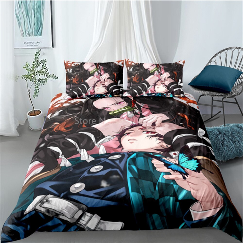 3D Japanese Anime Cartoon Character Printed Demon Slayer Bedding Set Queen King Size For Adults Boy With Pillowcases Duvet Covers
