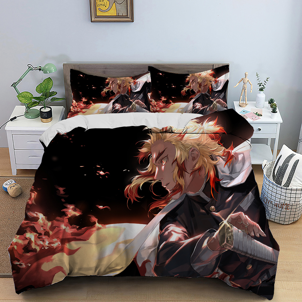 Anime Demon Slayer Bedding Set 3D Print Full Cartoon Duvet Cover + Pillowcase Kimetsu No Yaiba Bed Spread (