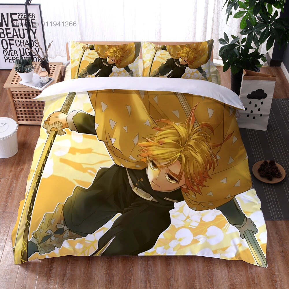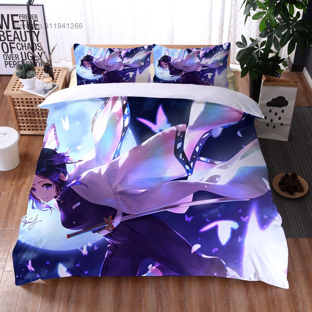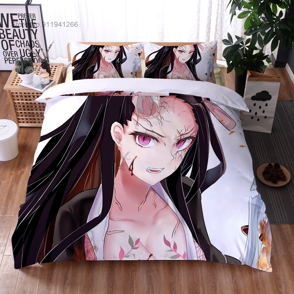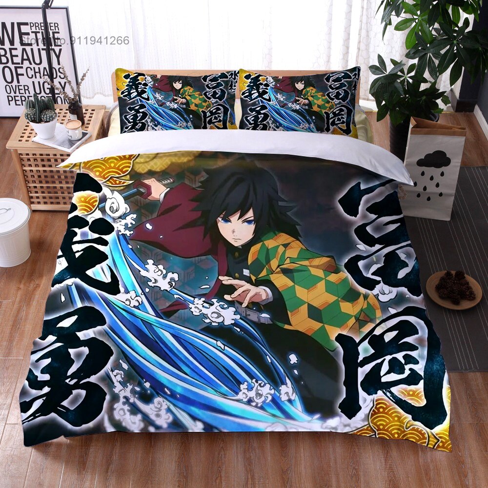 Anime Demon Slayer Bedding Set Cartoon Duvet Cover Set 3D Print Demon Blade Cover Pillowcase Keep Warm Kids Gift