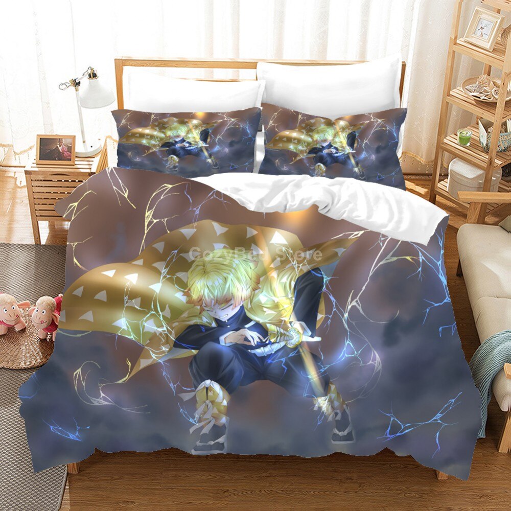 Anime Demon Slayer Bedding Set Cartoon Duvet Cover Sets Bed 3D