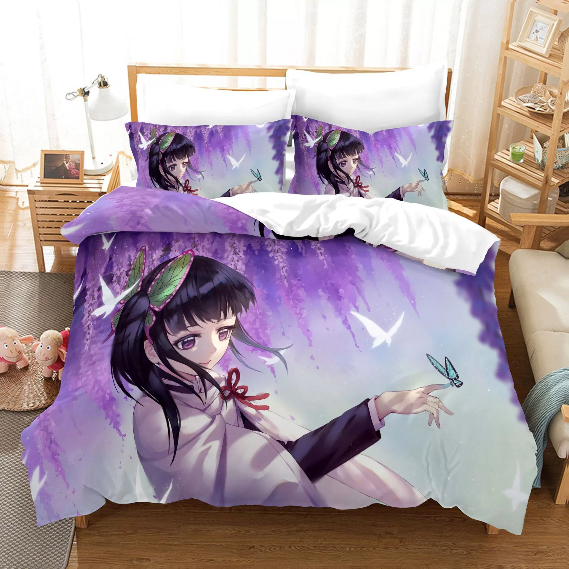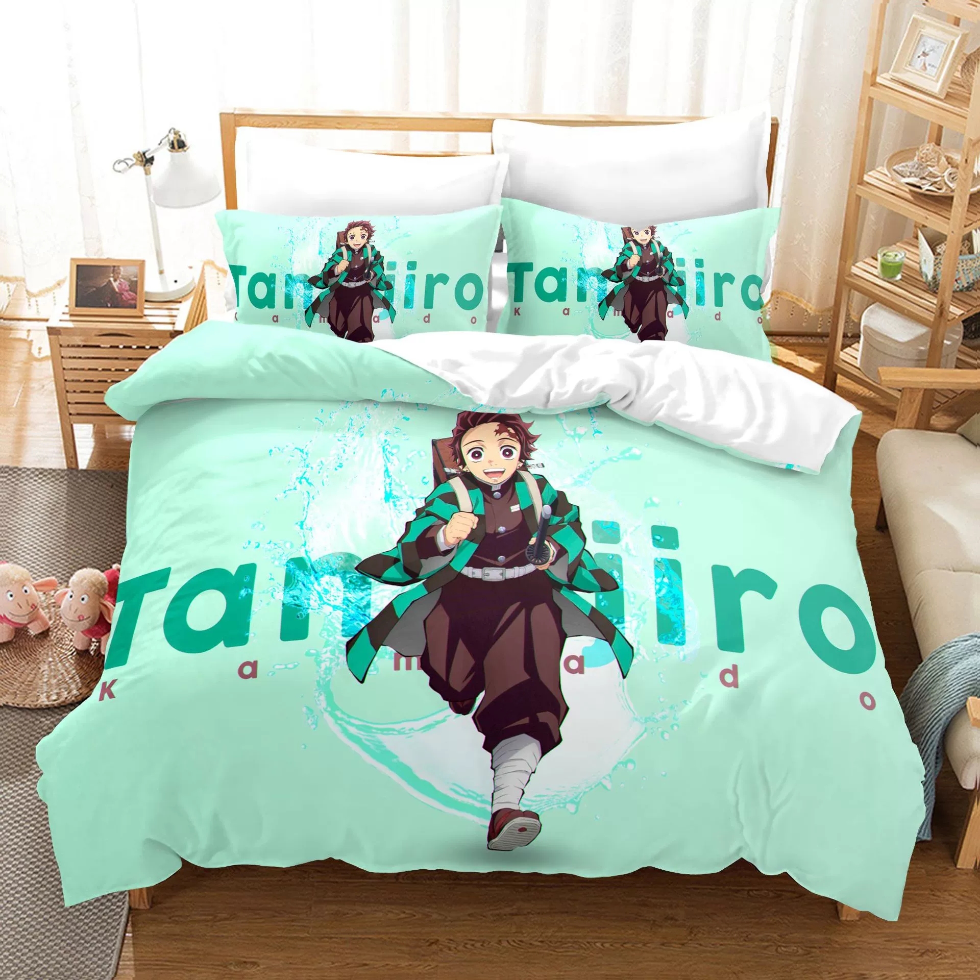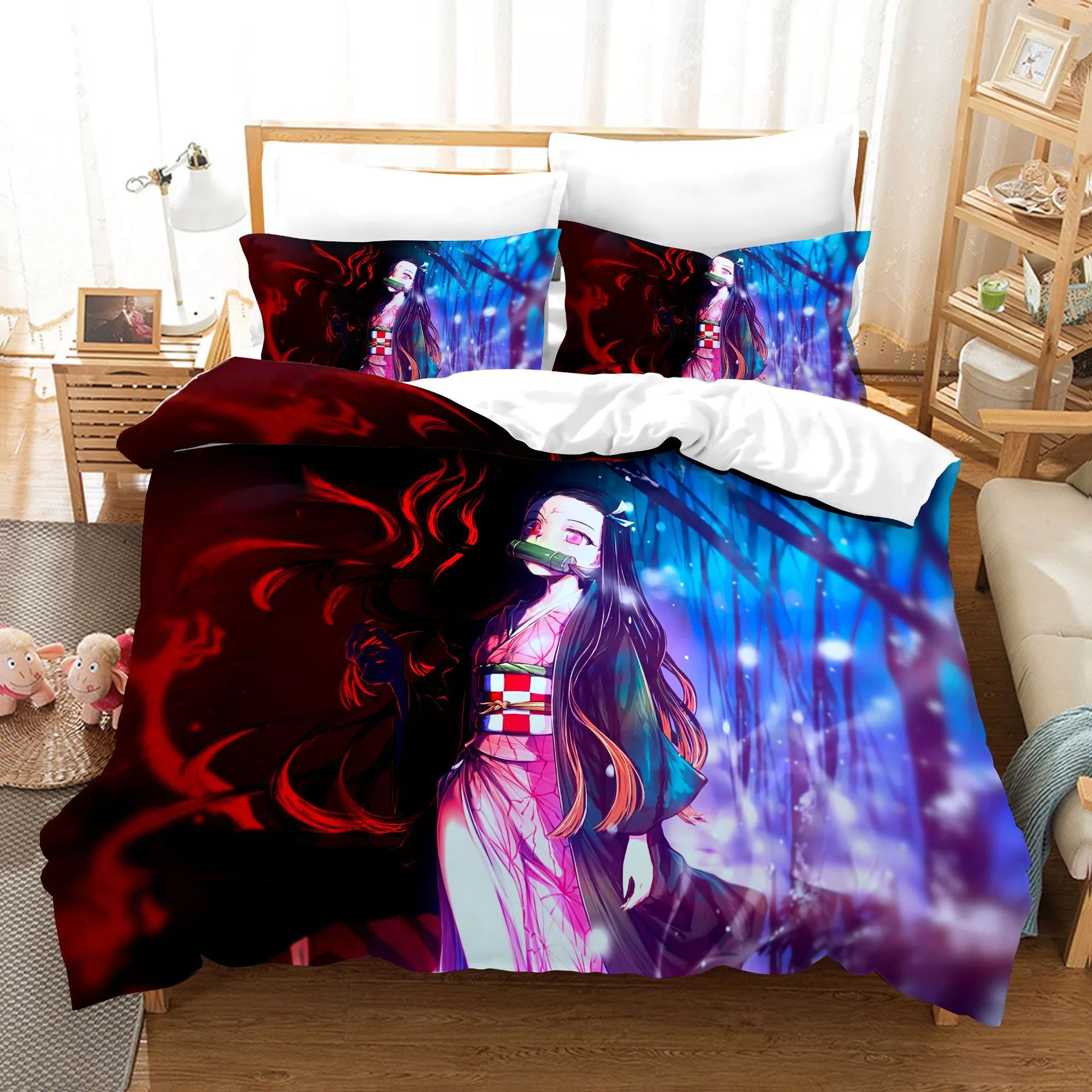 Anime Demon Slayer Comforter Bedding Set Duvet Cover Set 3D Print Demon Blade Bed Quilt Cover Pillowcase (No Sheets) Queen King