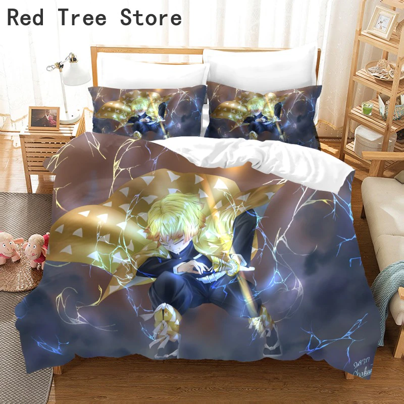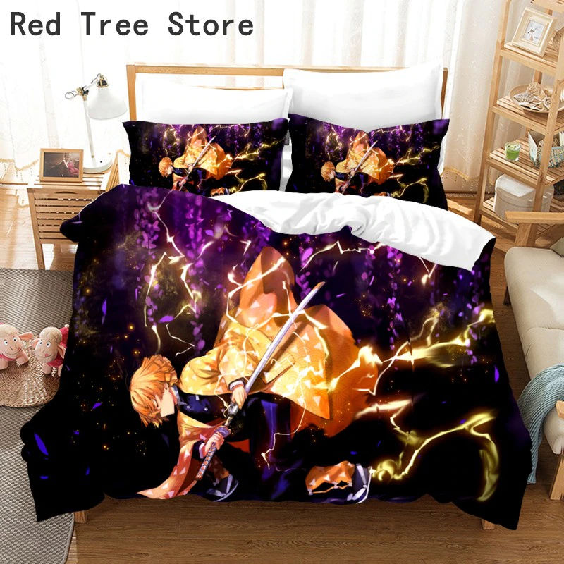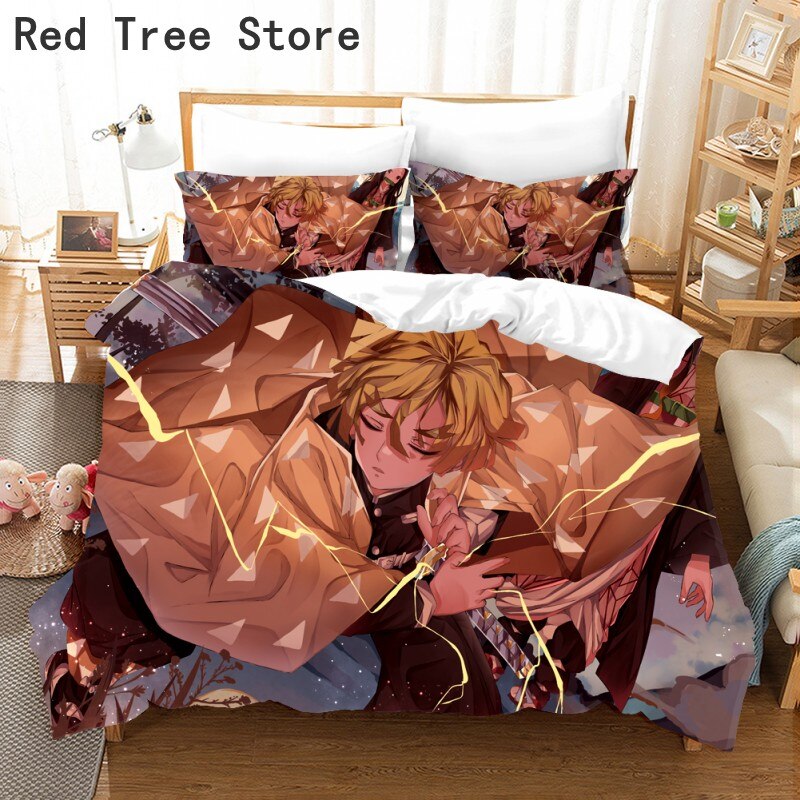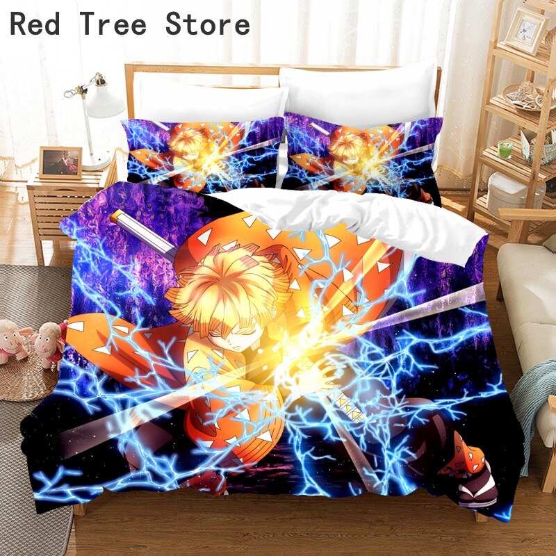 Anime Demon Slayer Devil’S Blade Cartoon Duvet Cover With Pillow Case 3D Home Textile Decor Kids Boy Twin Full Size Bedding Set