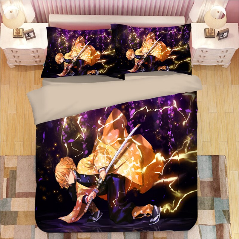 Anime Demon Slayer Kimetsu No Yaiba Bed Linen Cartoon Duvet Covers Pillowcases Kids Anime Bedding Sets Bed Set