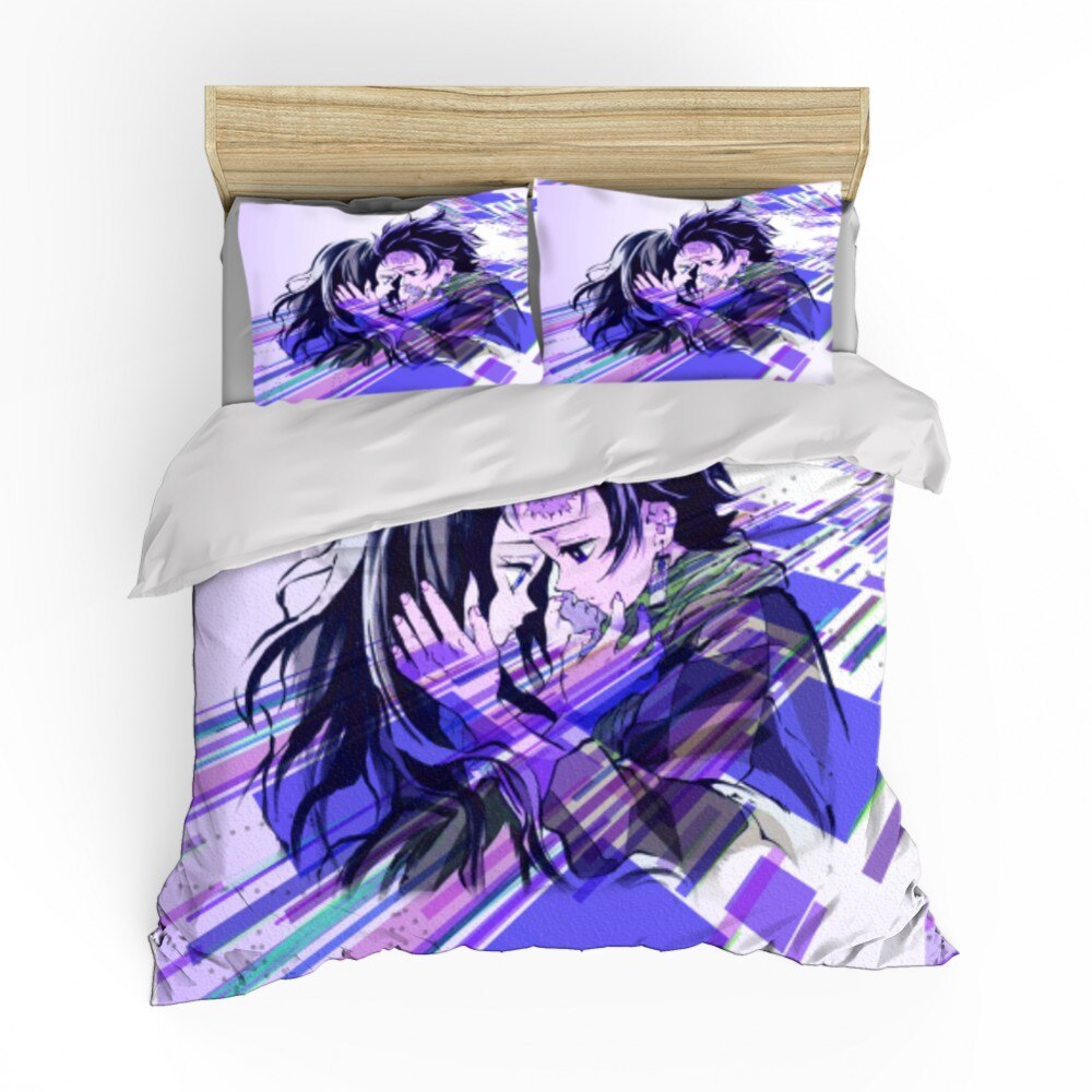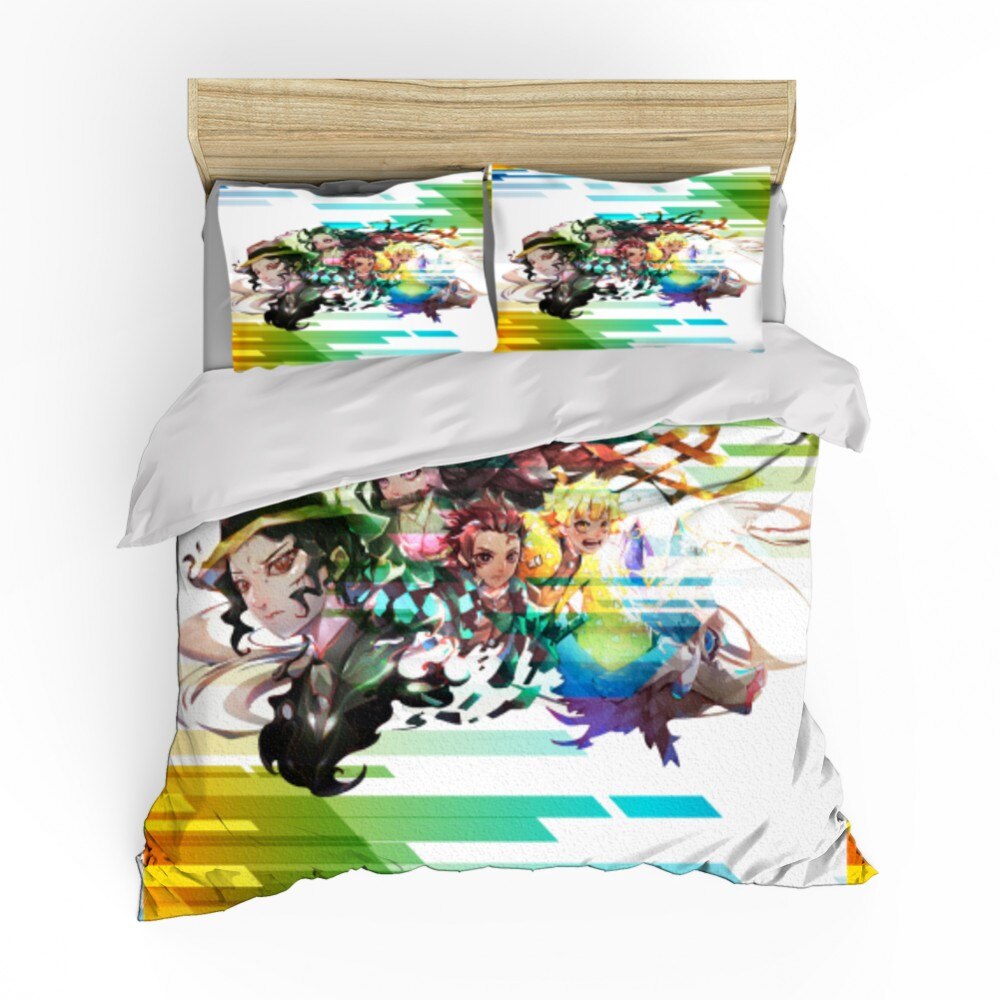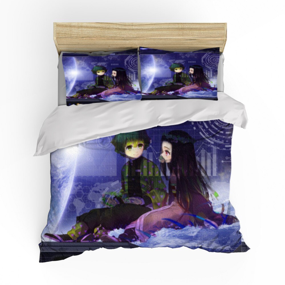 Cartoon 2/3 Pieces Demon Blade Bedding Set Demon Slayer Duvet Cover 3D Print Anime Bed Cover Pillowcase