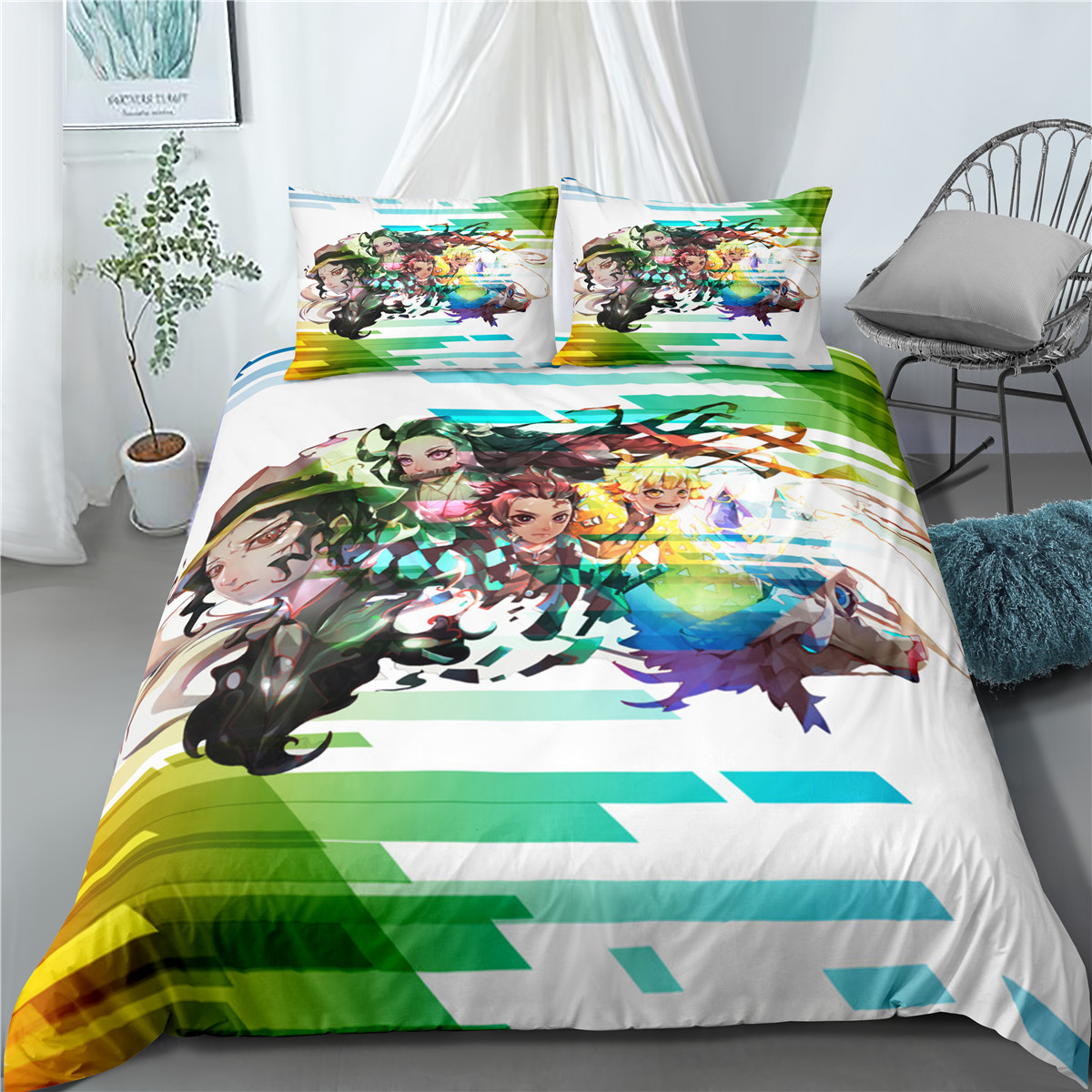 Cartoon Anime Demon Slayer Kimetsu No Yaiba Sticker Bed Duvet Covers Pillowcases Anime Cover Bedding Sets