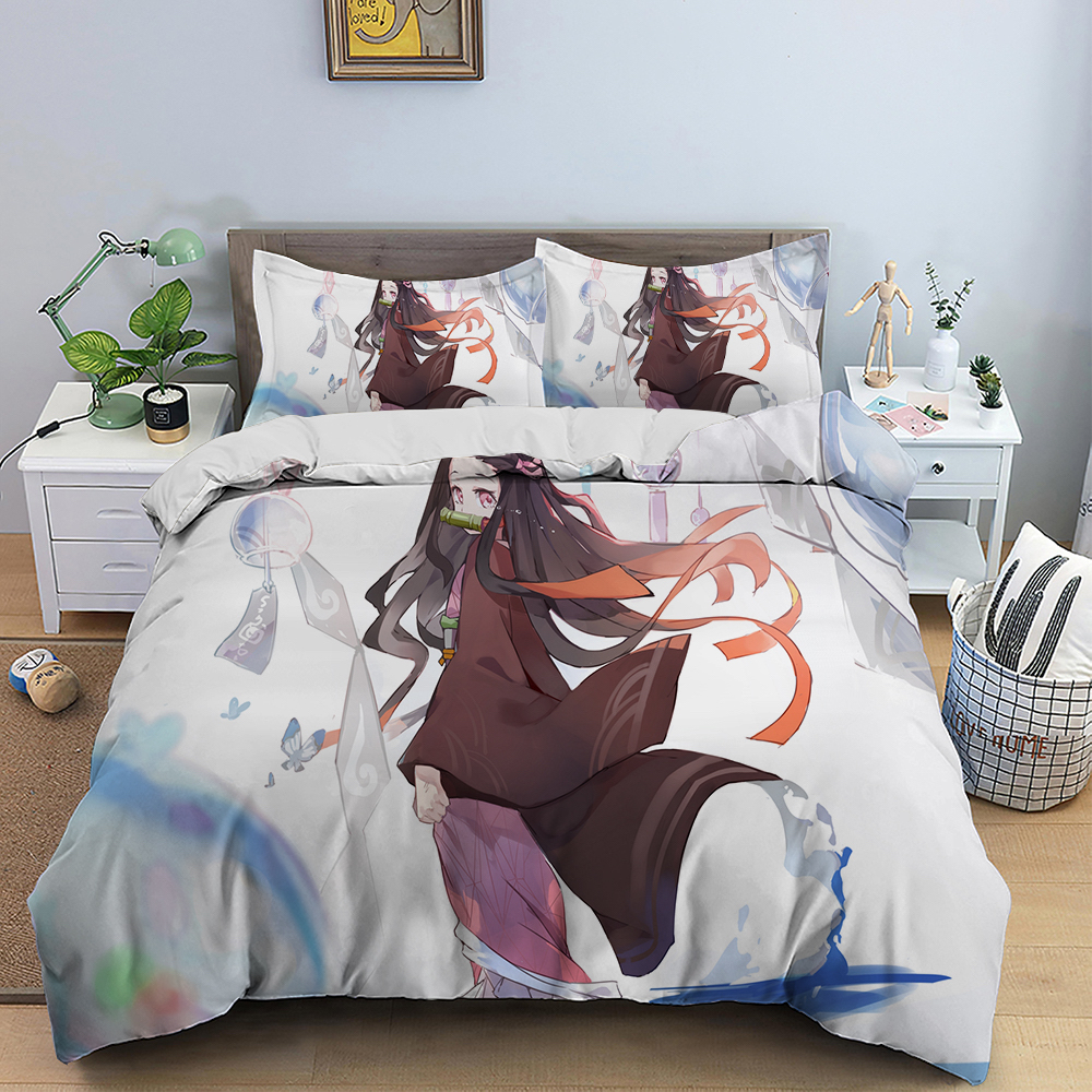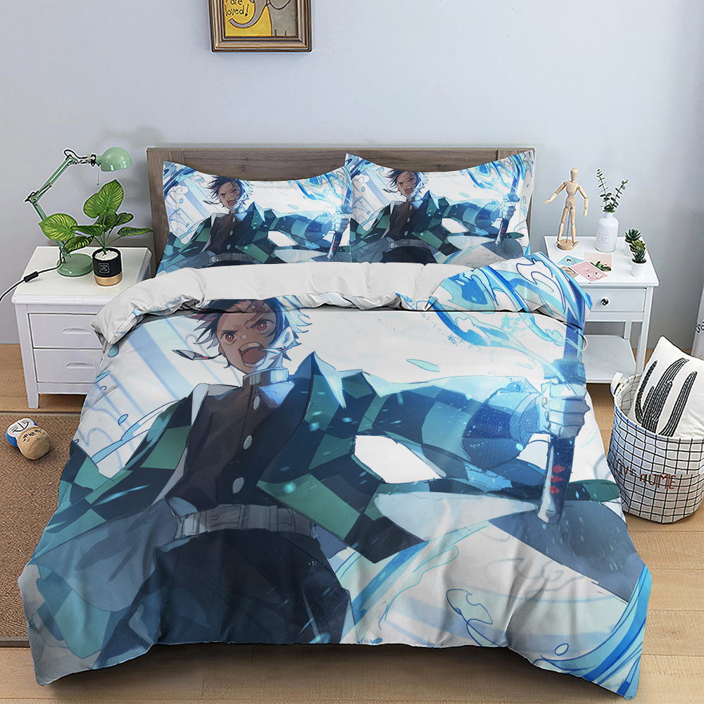 Cartoon Anime Duvet Cover Japan Demon Slayer Bedding Set Bed Set Teen Pillowcas