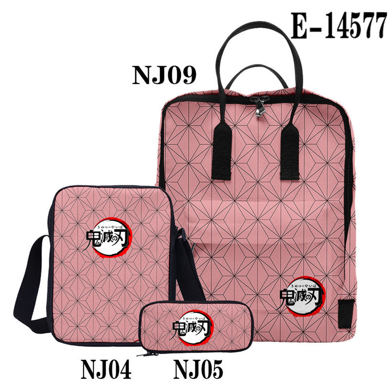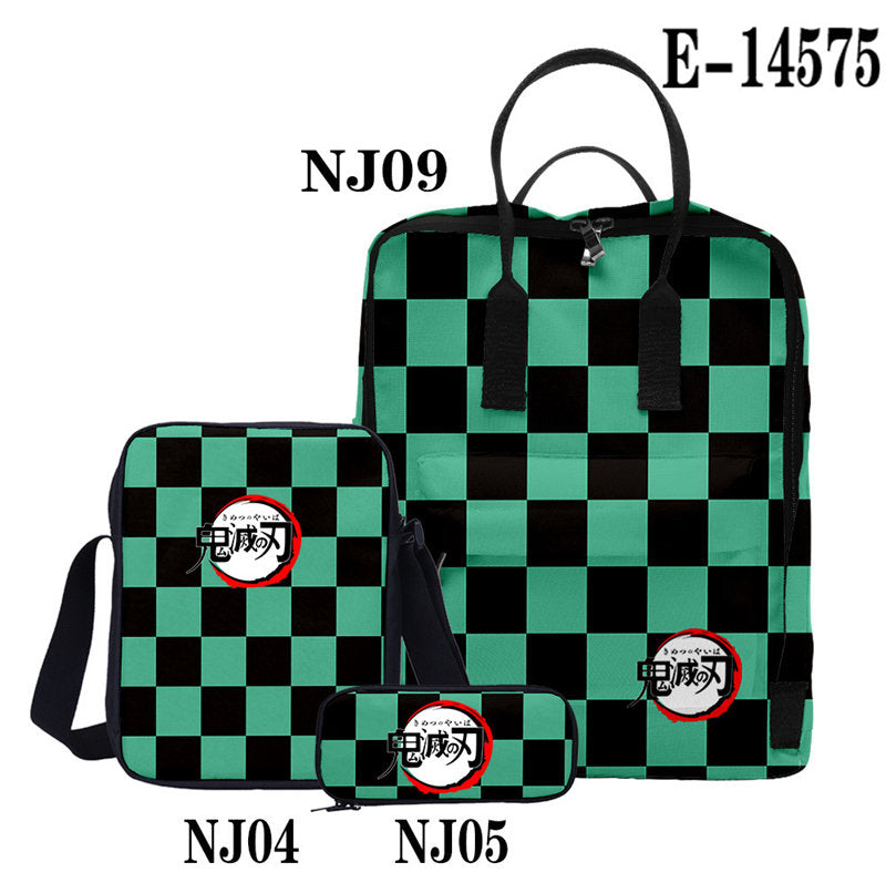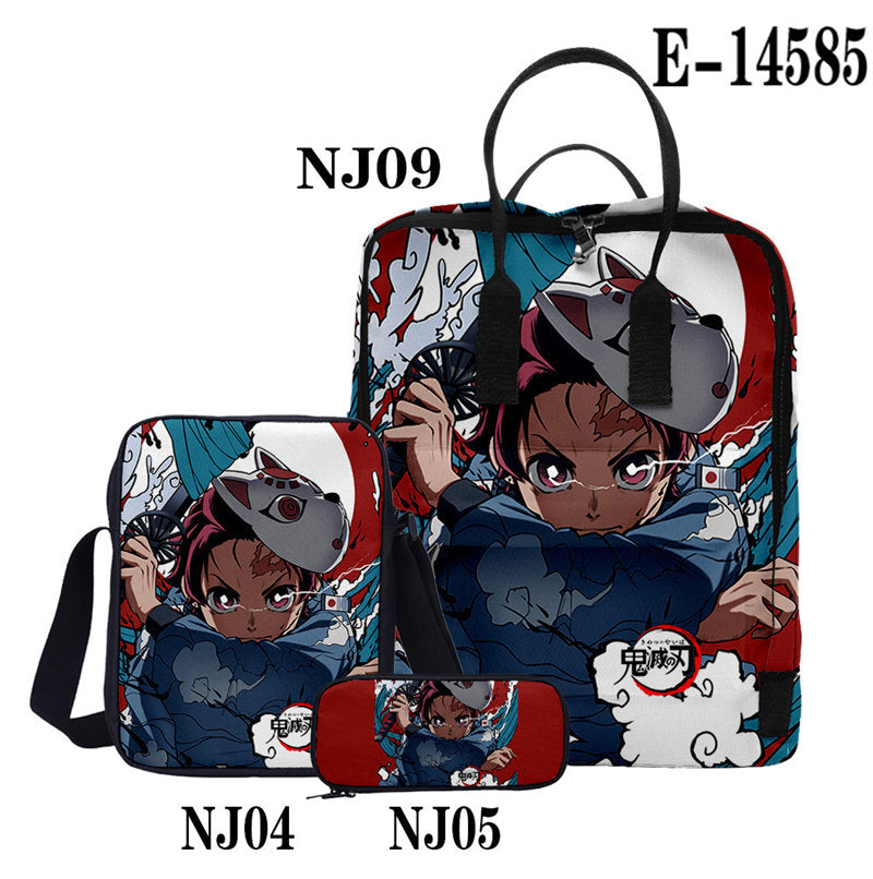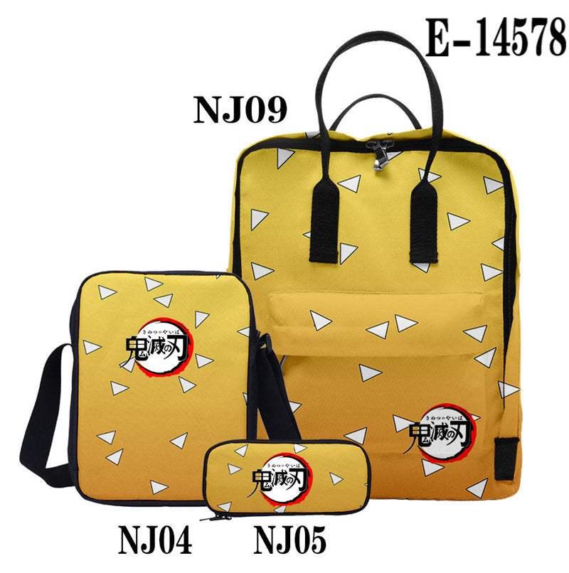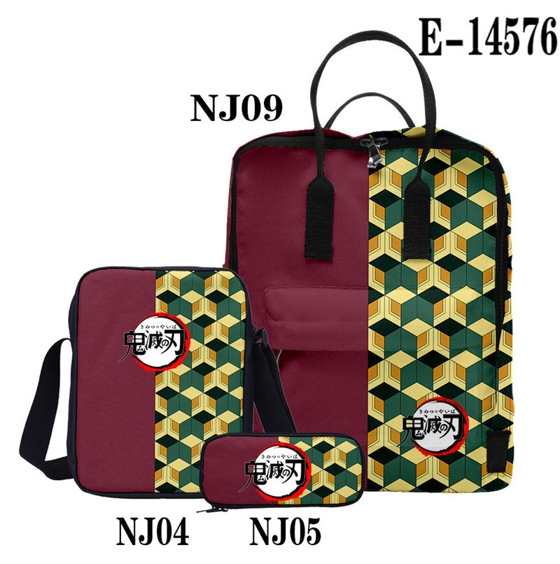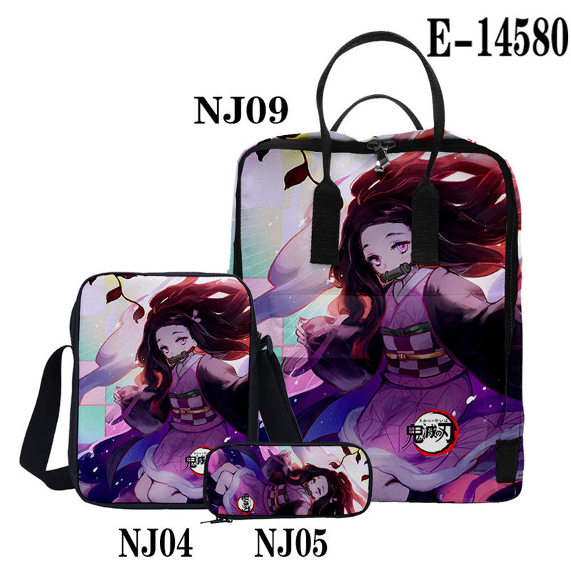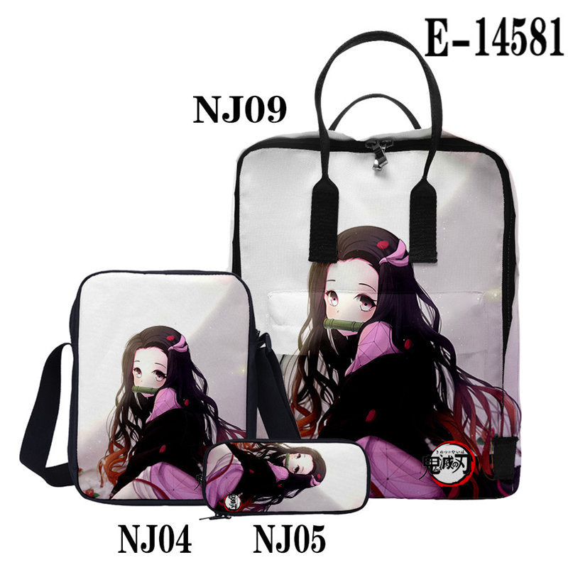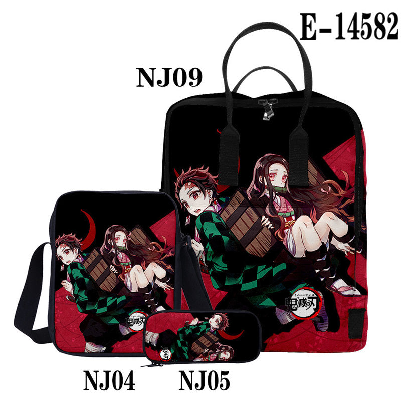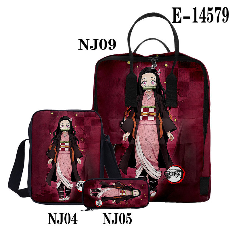 Casual Stylish Demon Slayer 3D Backpack With Two Shoulders For Women Men 3-Pieces Set
