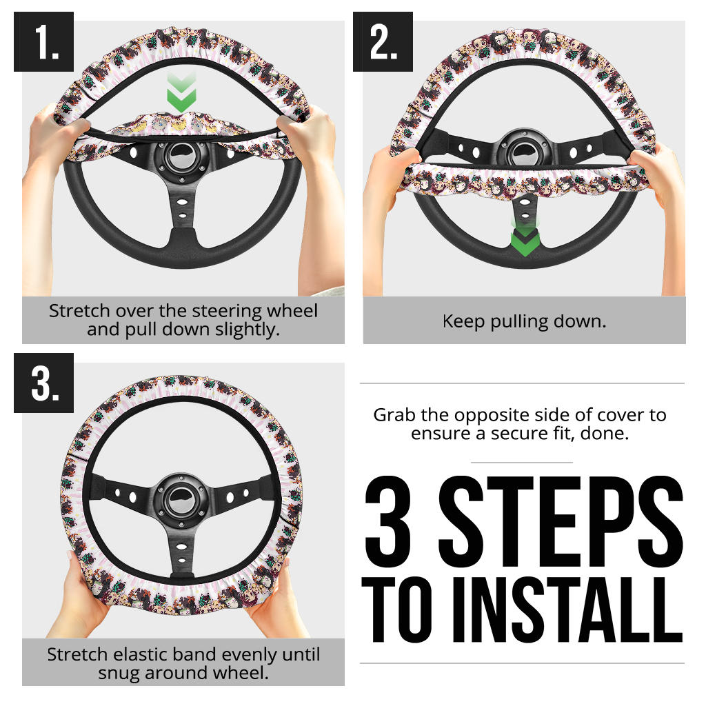 Chipi Demon Slayer Anime Car Steering Wheel Cover 3