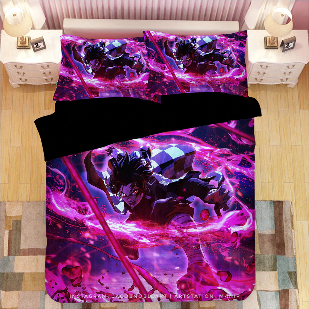 Cool Student Home 3D Print Demon Slayer Bed Linen Cartoon Anime Duvet Covers Pillowcases Kids Anime Bedding Set