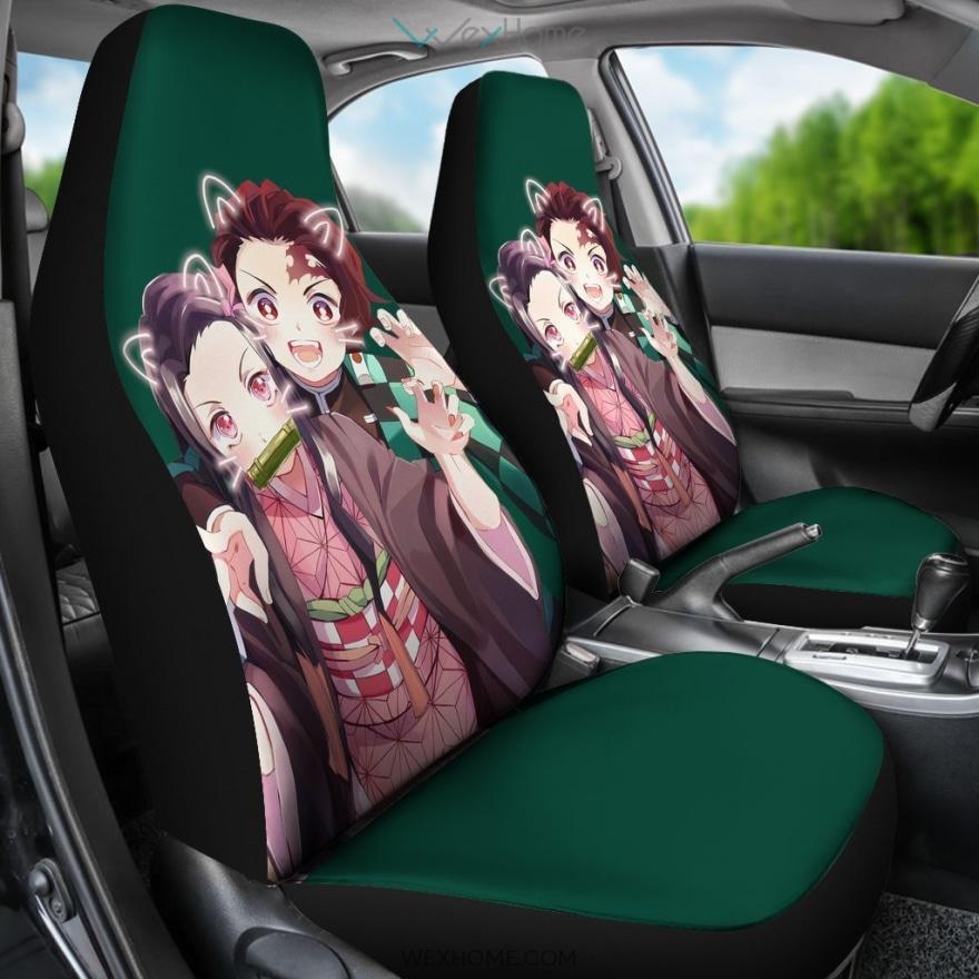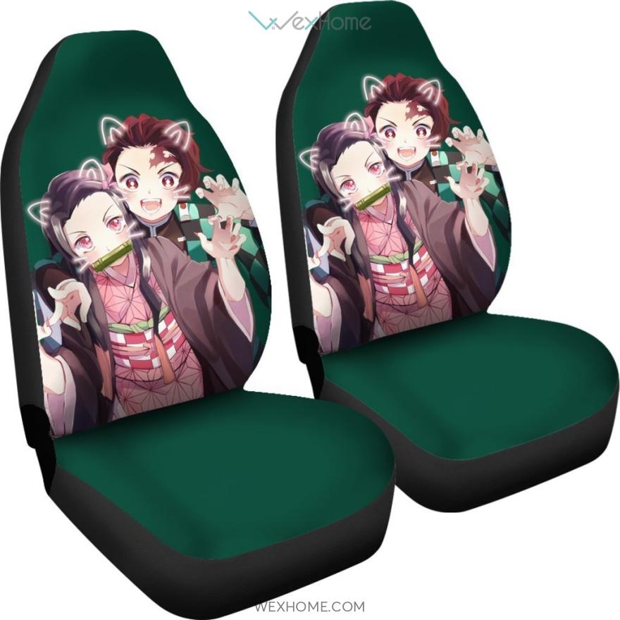 Cute Nezuko And Tanjiro Kamado Demon Slayer Anime Car Seat Covers