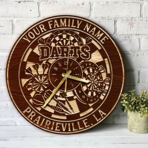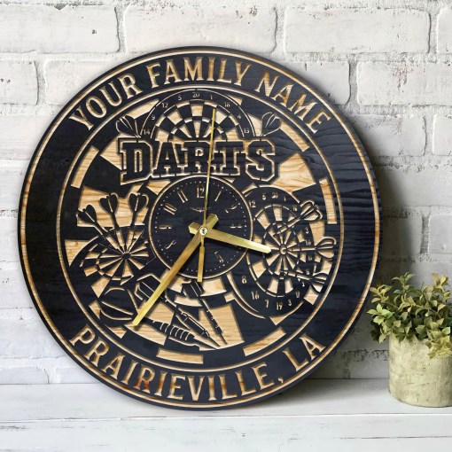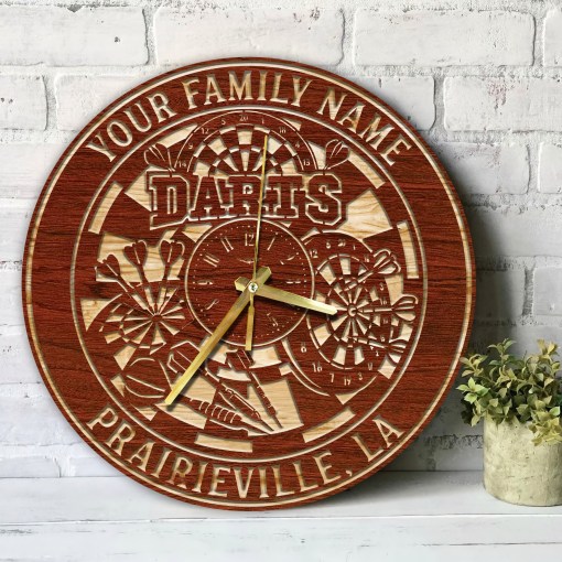 Darts Wood Wall Art Clock Themed Clocks Darts Sport Home Decor Darts Player Gift Gifts For Him Darts Sign Poster Custom Wall Clock-