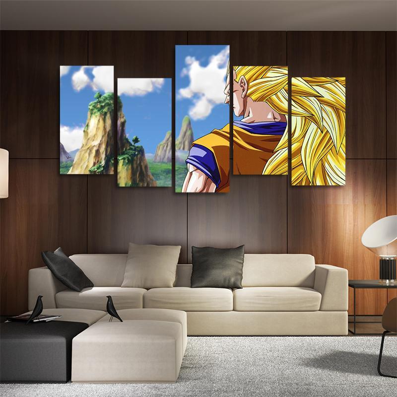 DBZ Serious Goku SSJ 3 Asymmetrical 5pcs Wall Art Canvas Print