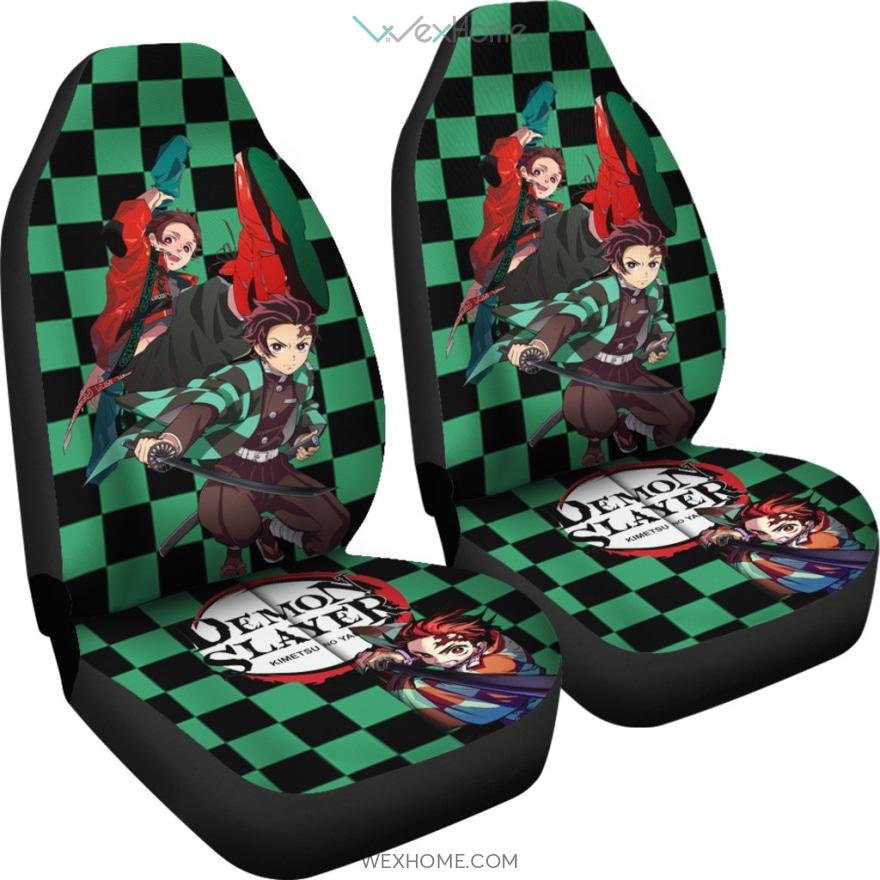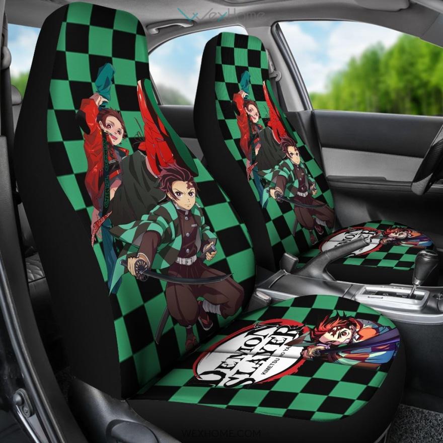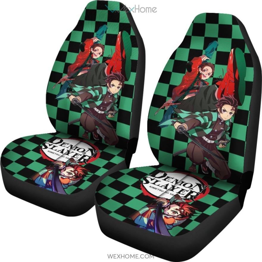Demon Slayer Anime Car Seat Covers | Cool Tanjiro Hip Hop Cheker Background Seat Covers