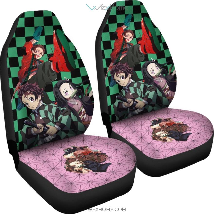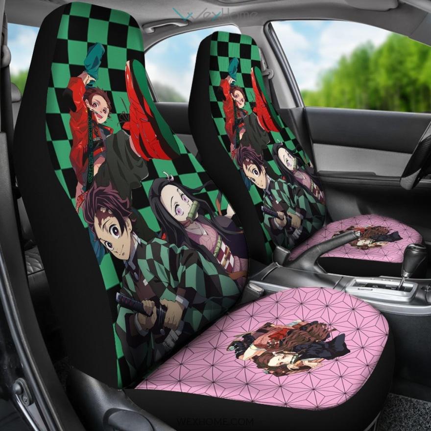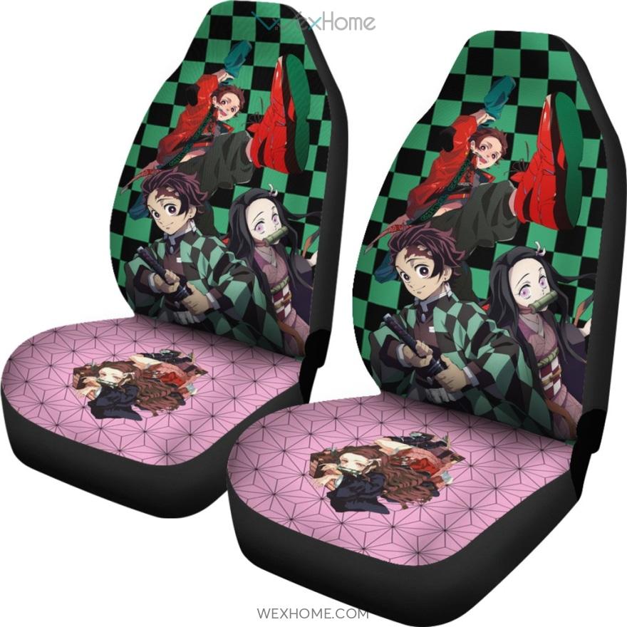 Demon Slayer Anime Car Seat Covers – Cute Nezuko And Tanjiro Checker And Pink Seat Covers