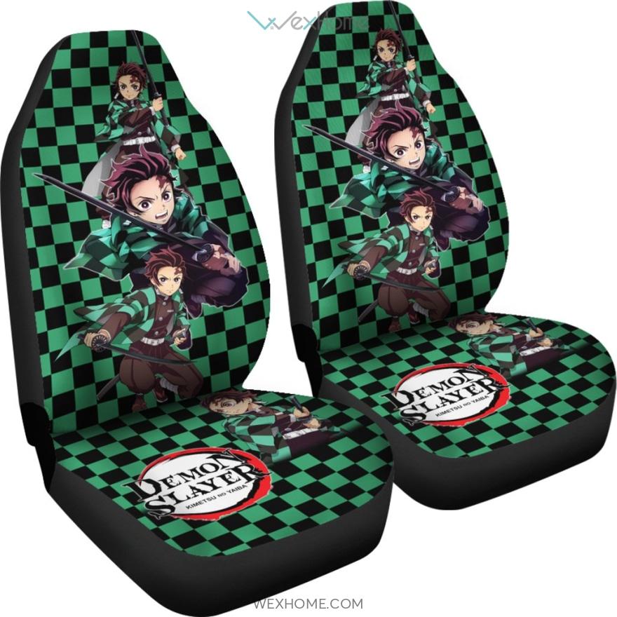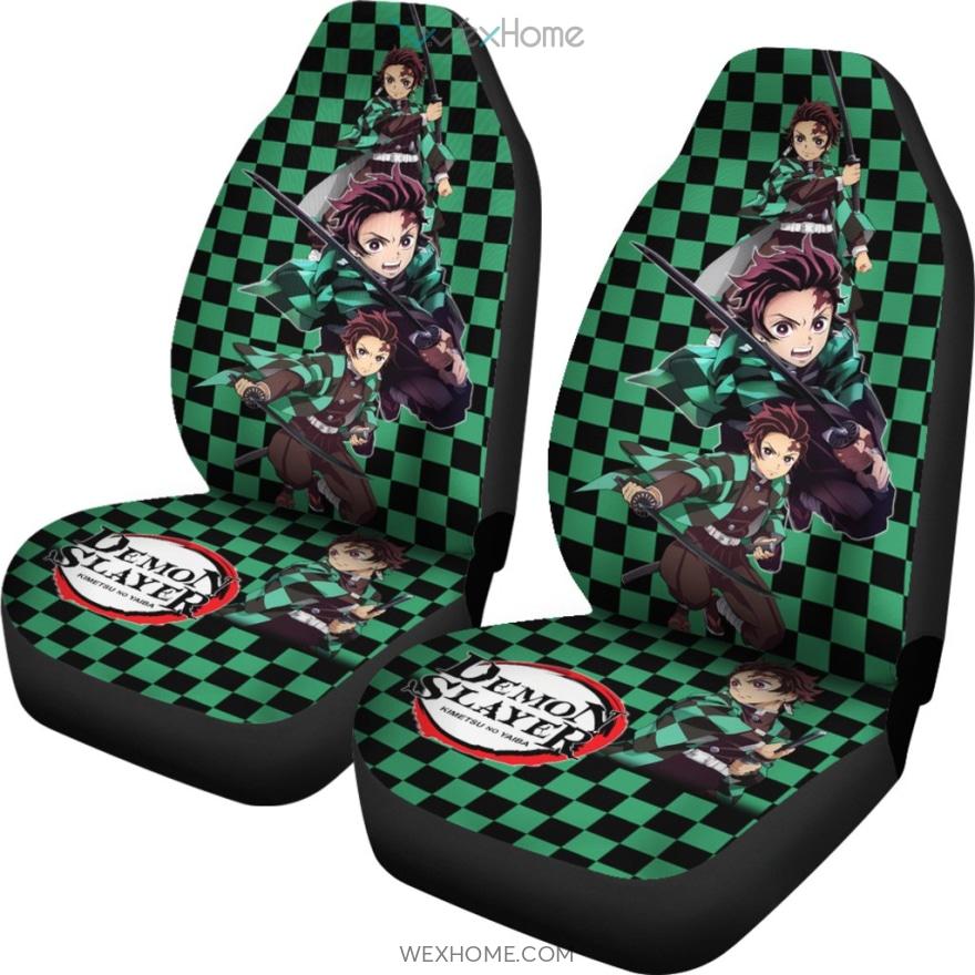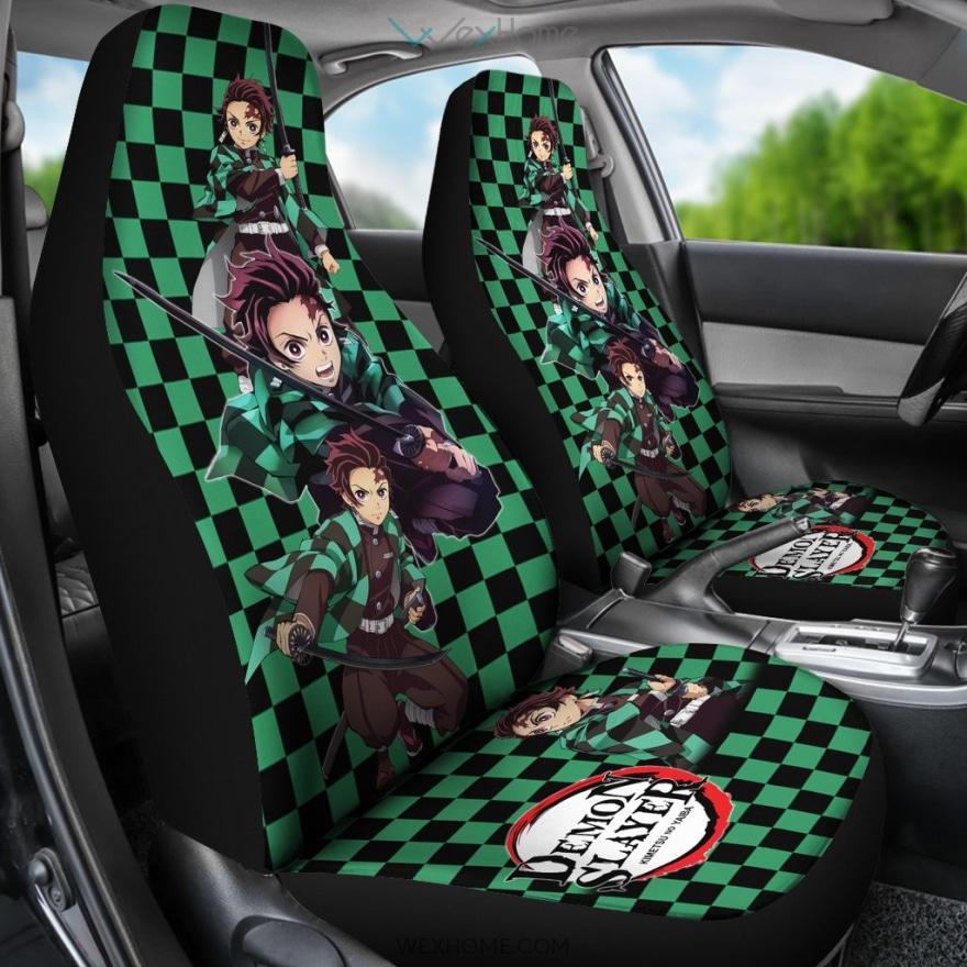 Demon Slayer Anime Car Seat Covers | Tanjiro Black Green Checker Background Seat Covers