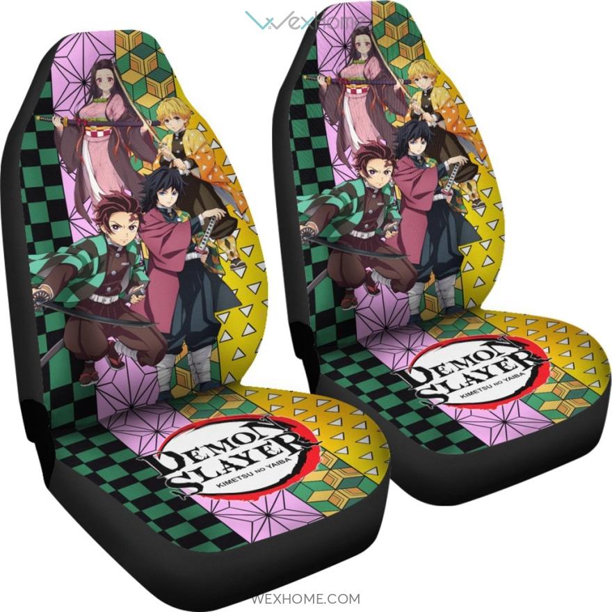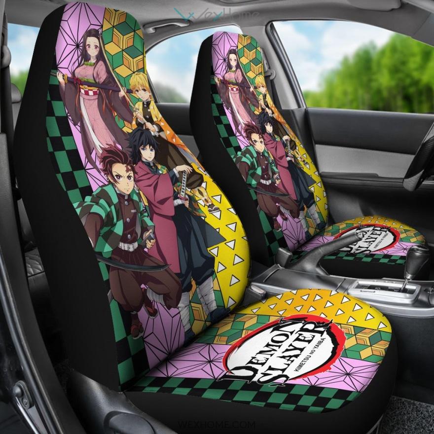 Demon Slayer Anime Car Seat Covers | Tanjiro Nezuko Zenitsu And Giyuu Unique Background Seat Covers