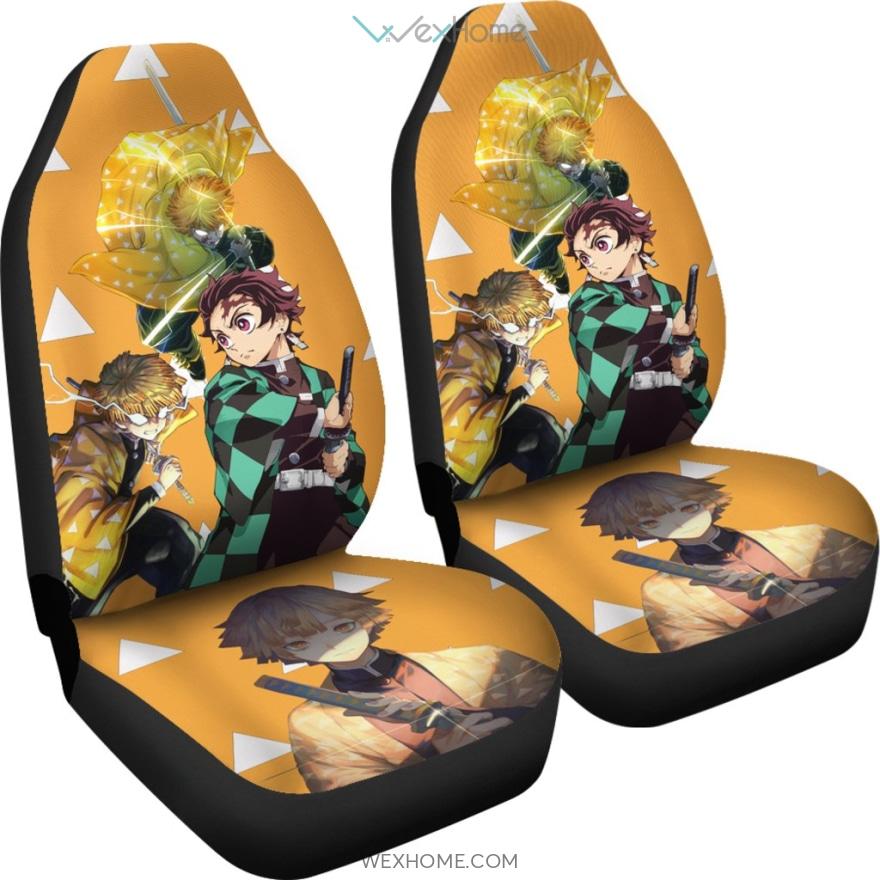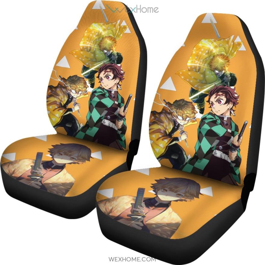 Demon Slayer Anime Car Seat Covers | Zenitsu And Tanjiro Fighting Lightning Yellow Seat Covers
