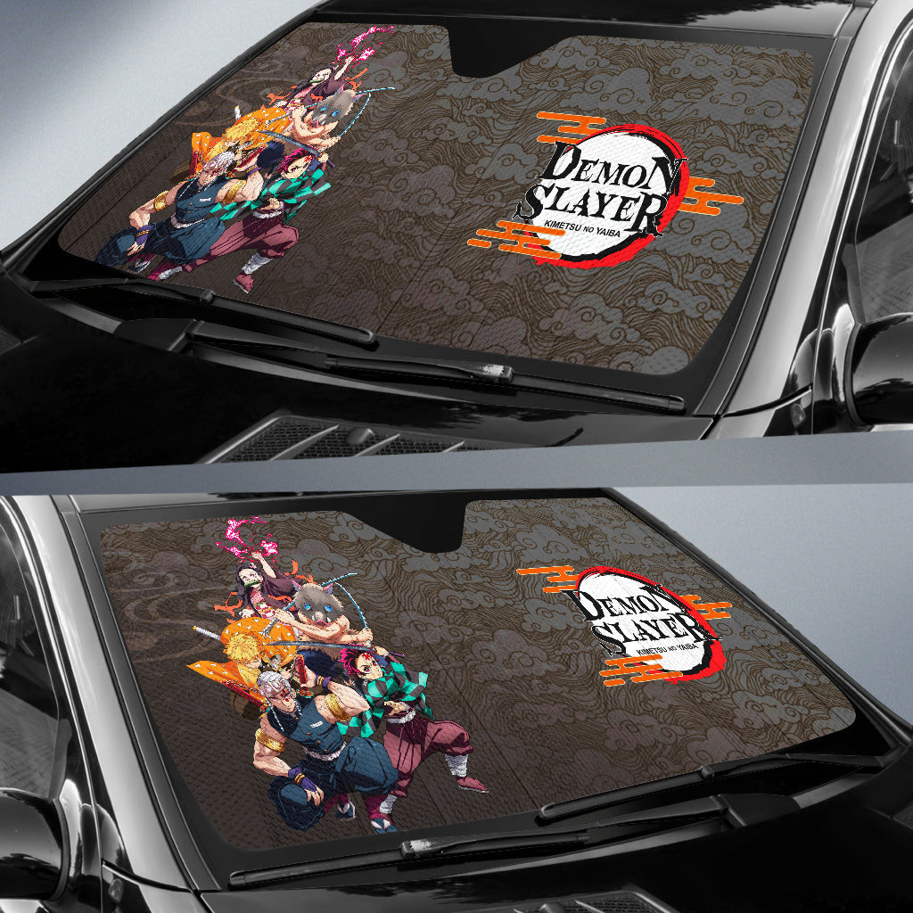 Demon Slayer Anime Car Sunshade Kimetsu No Yaiba Poster Black Car Sun Shade