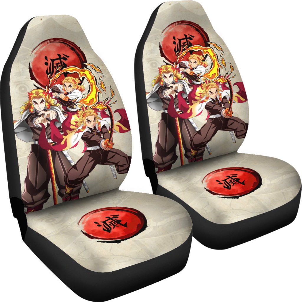 • Car Seat Covers - Demon Slayer Anime Car Seat Covers Rengoku Fire Breath Power Red Sun Seat Covers NA020804