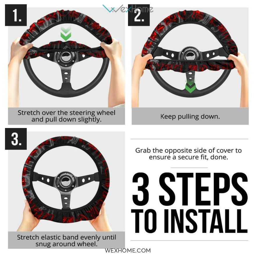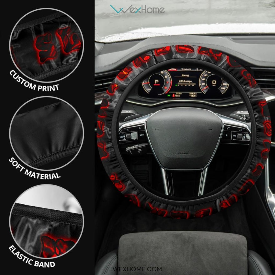 Demon Slayer Anime Steering Wheel Cover | Demon Slayer Red Text Steering Wheel Cover
