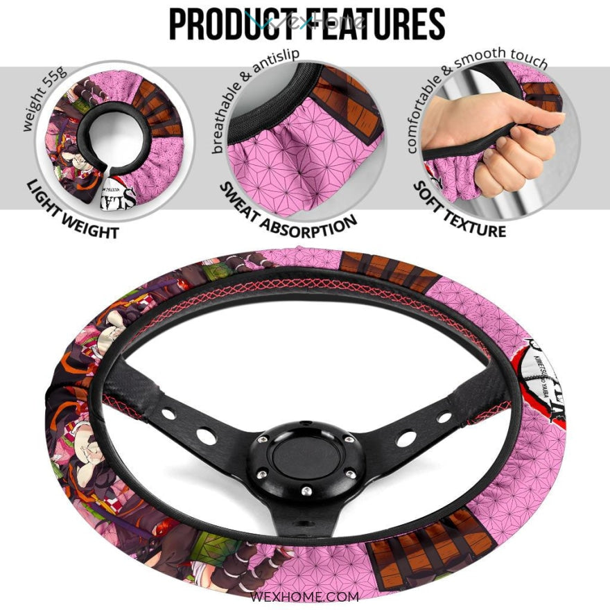 Style: Steering Wheel Cover - Demon Slayer Anime Steering Wheel Cover | Nezuko Pretty Girl Moments Pink Background Steering Wheel Cover NA071403