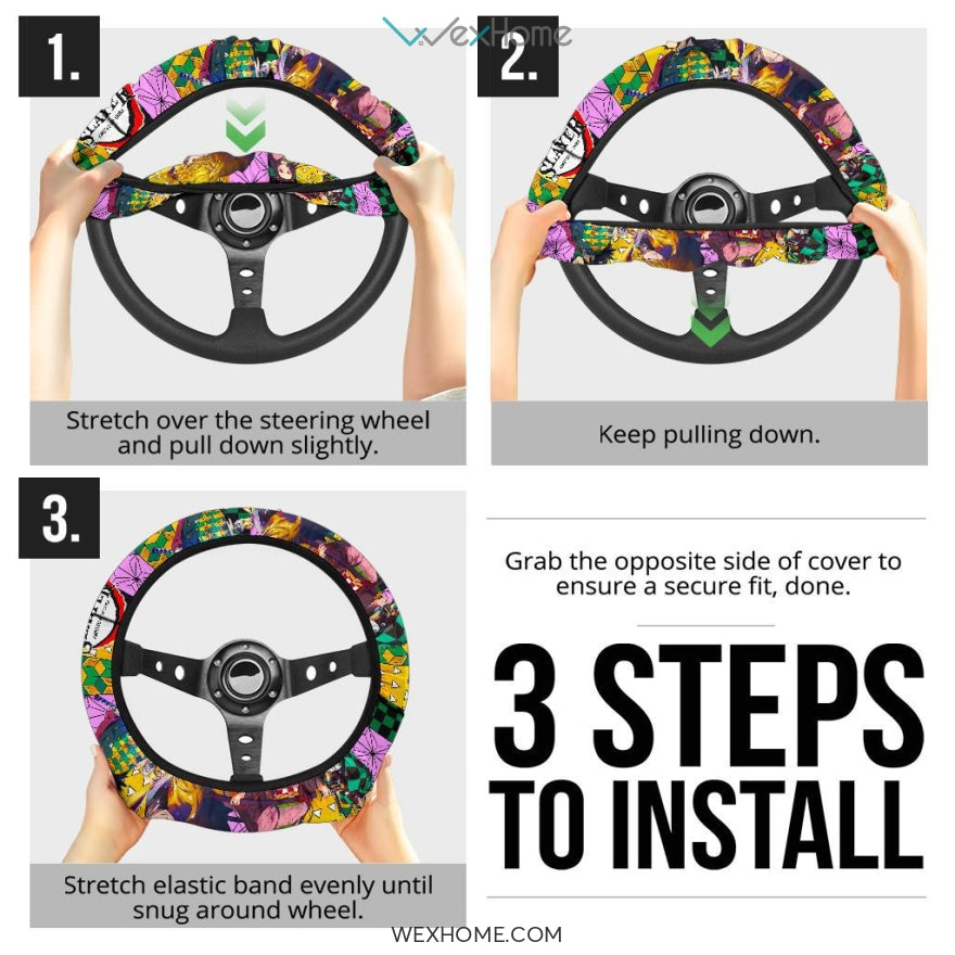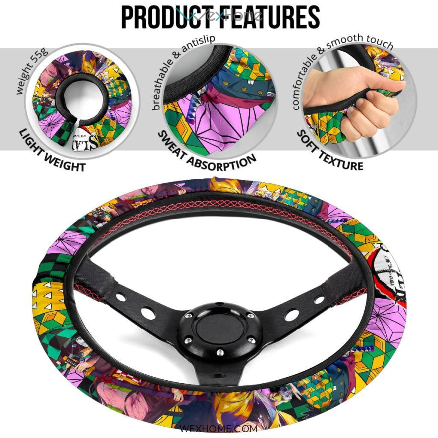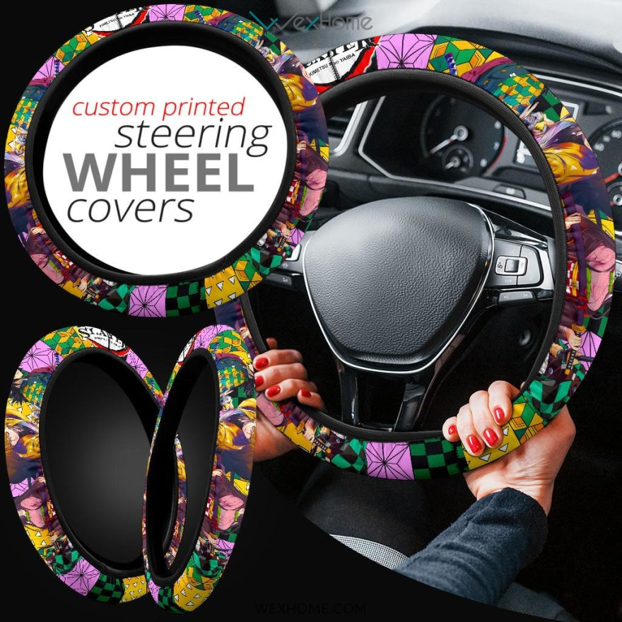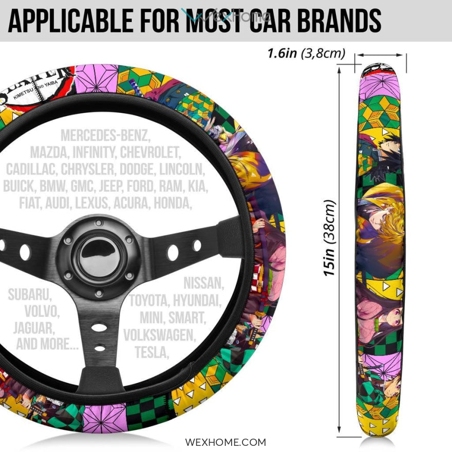 Demon Slayer Anime Steering Wheel Cover | Tanjiro Nezuko Zenitsu And Giyuu Unique Background Steering Wheel Cover