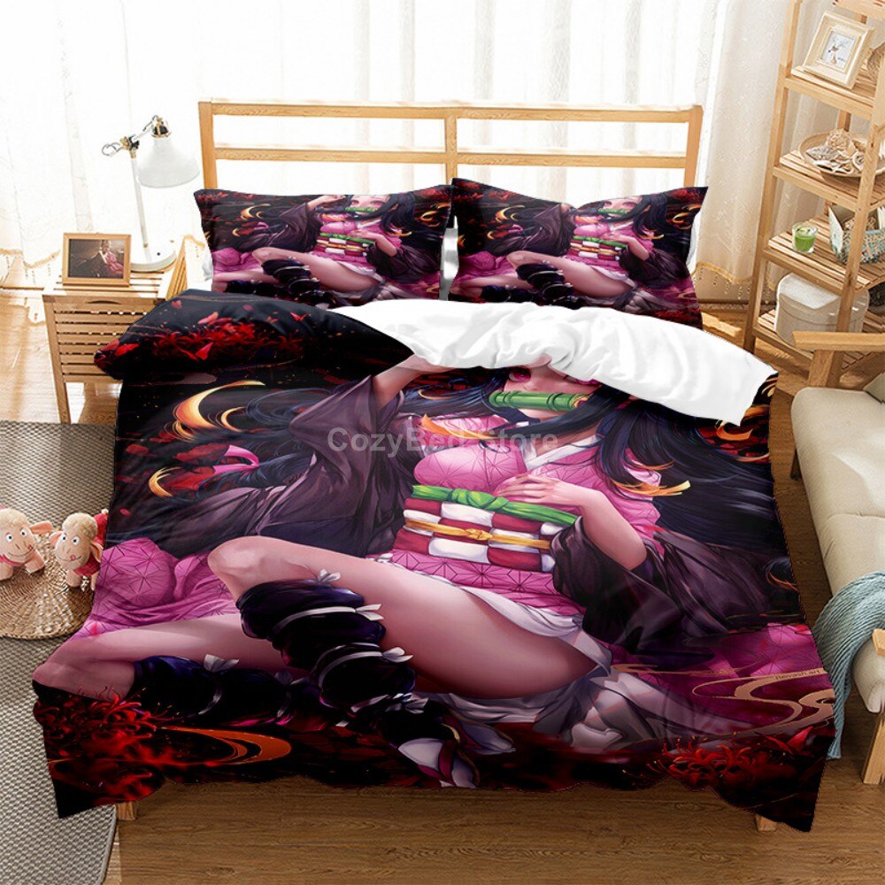Demon Slayer Bedding Set 3D Duvet Cover Sets Bed Fashion Anime Cartoon