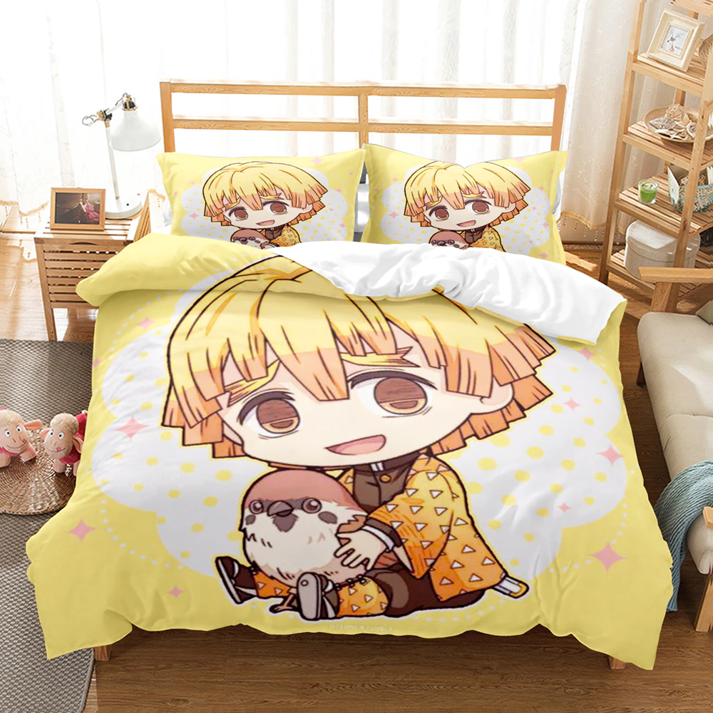 Demon Slayer Bedding Set 3D Japanese Anime Kids Gift Duvet Cover Bed Linen Home Textiles Queen King Single Size