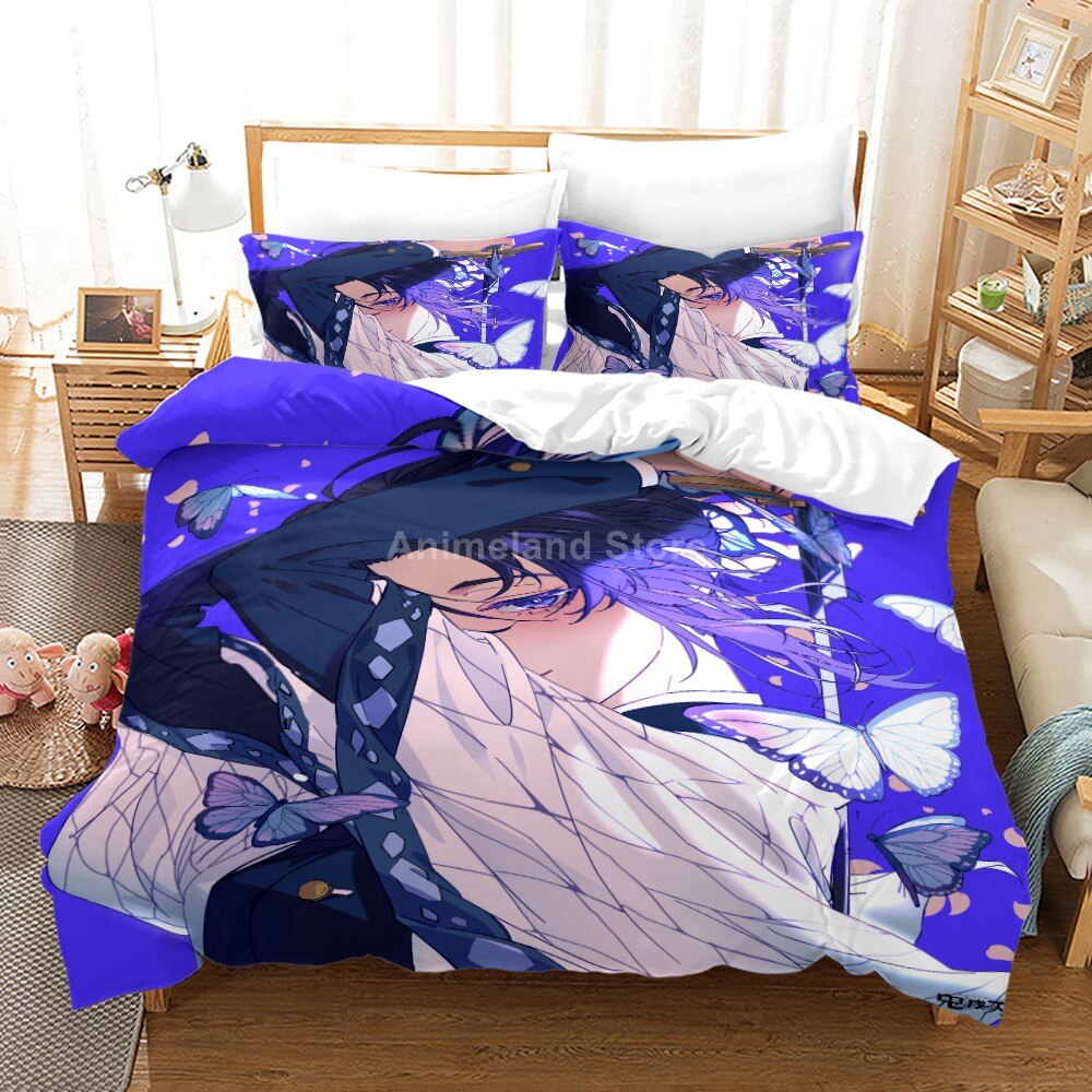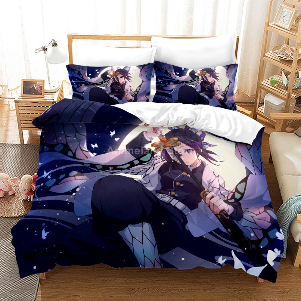 Demon Slayer Bedding Set Kochou Shinobu 3D Duvet Cover Sets Bedclothes Cartoon Twin Queen King Size Anime