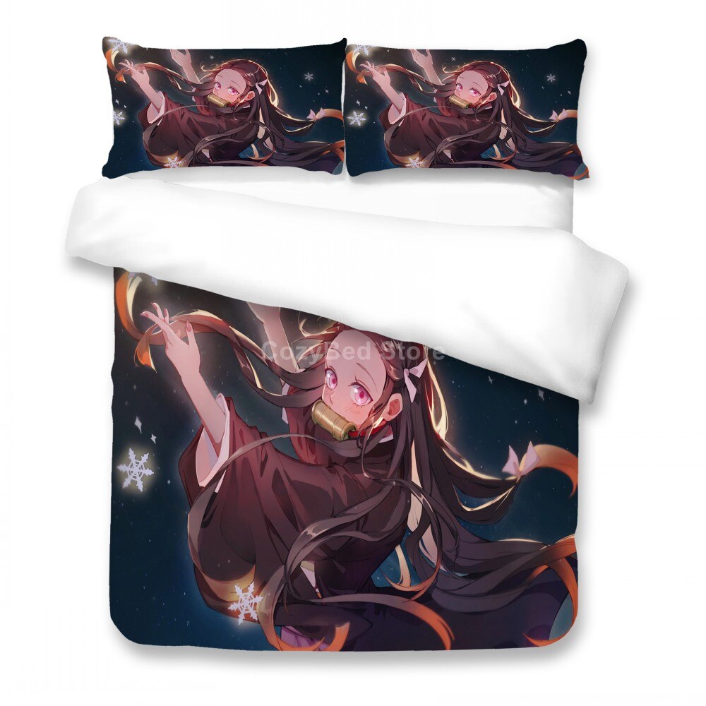 Demon Slayer Bedding Set Nezuko 3D Duvet Cover Sets Bed Cartoon Anime