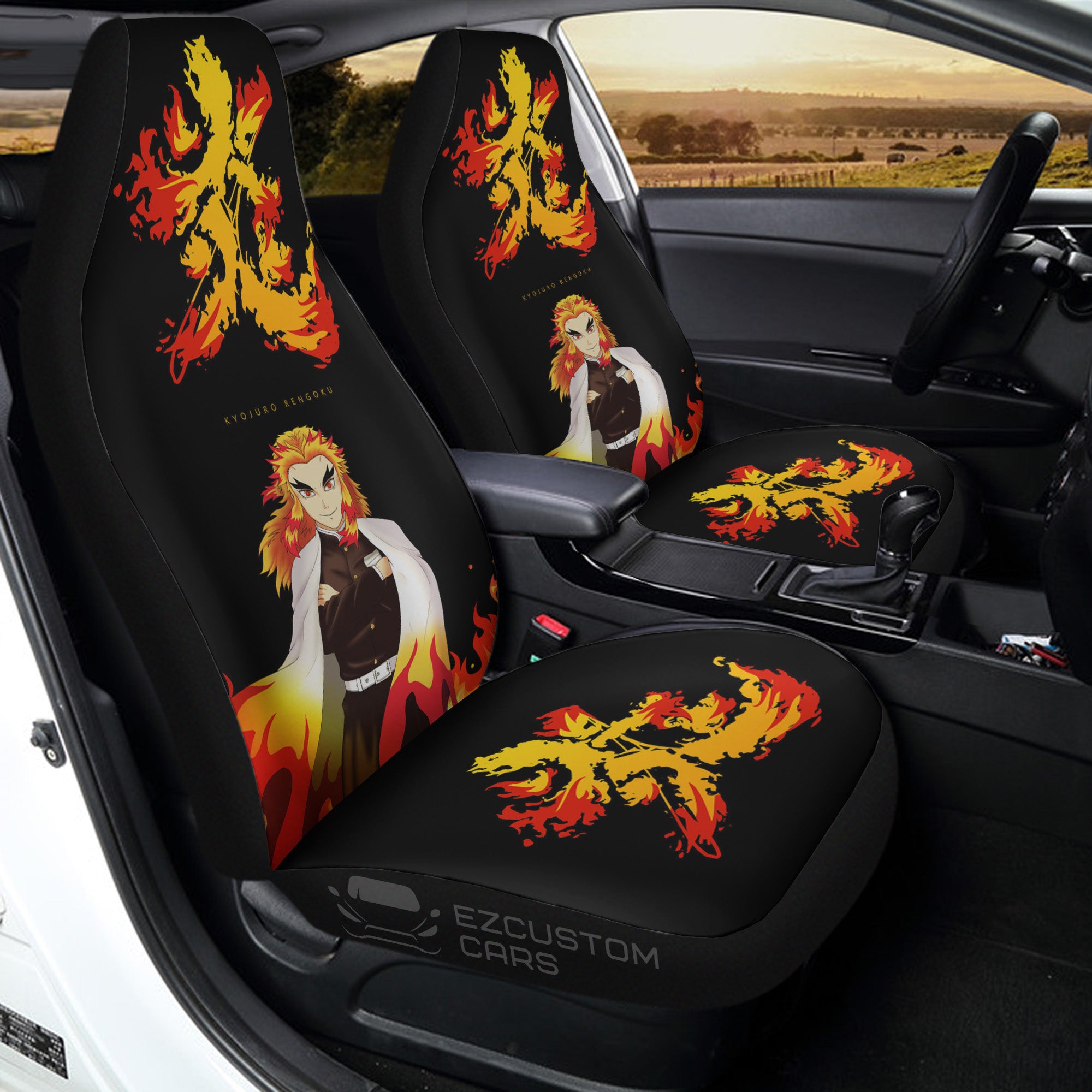 Demon Slayer Car Accessories Anime Car Seat Covers Kyojuro Rengoku X Symbol