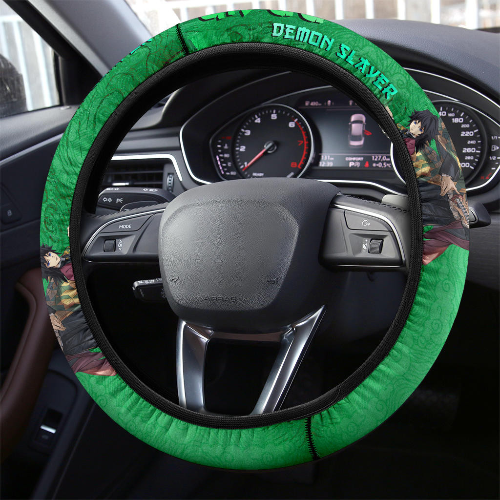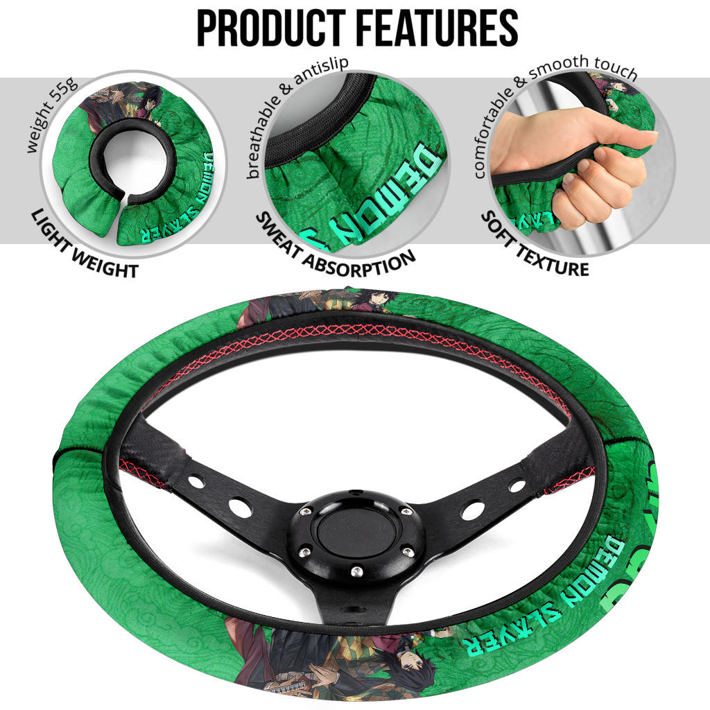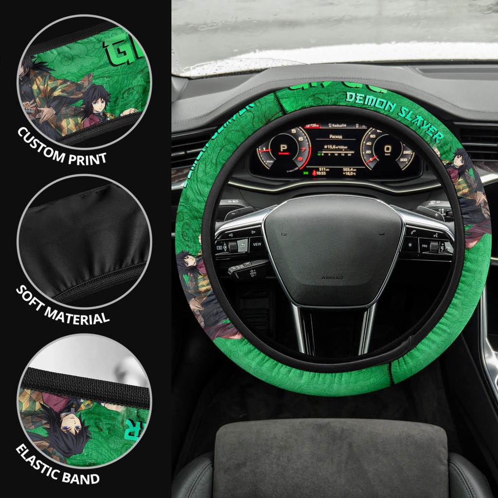 Demon Slayer Giyuu Water Breath Power Green Vintage Theme Steering Wheel Cover