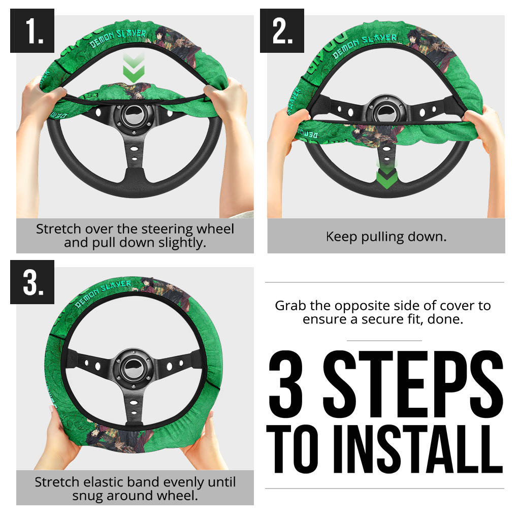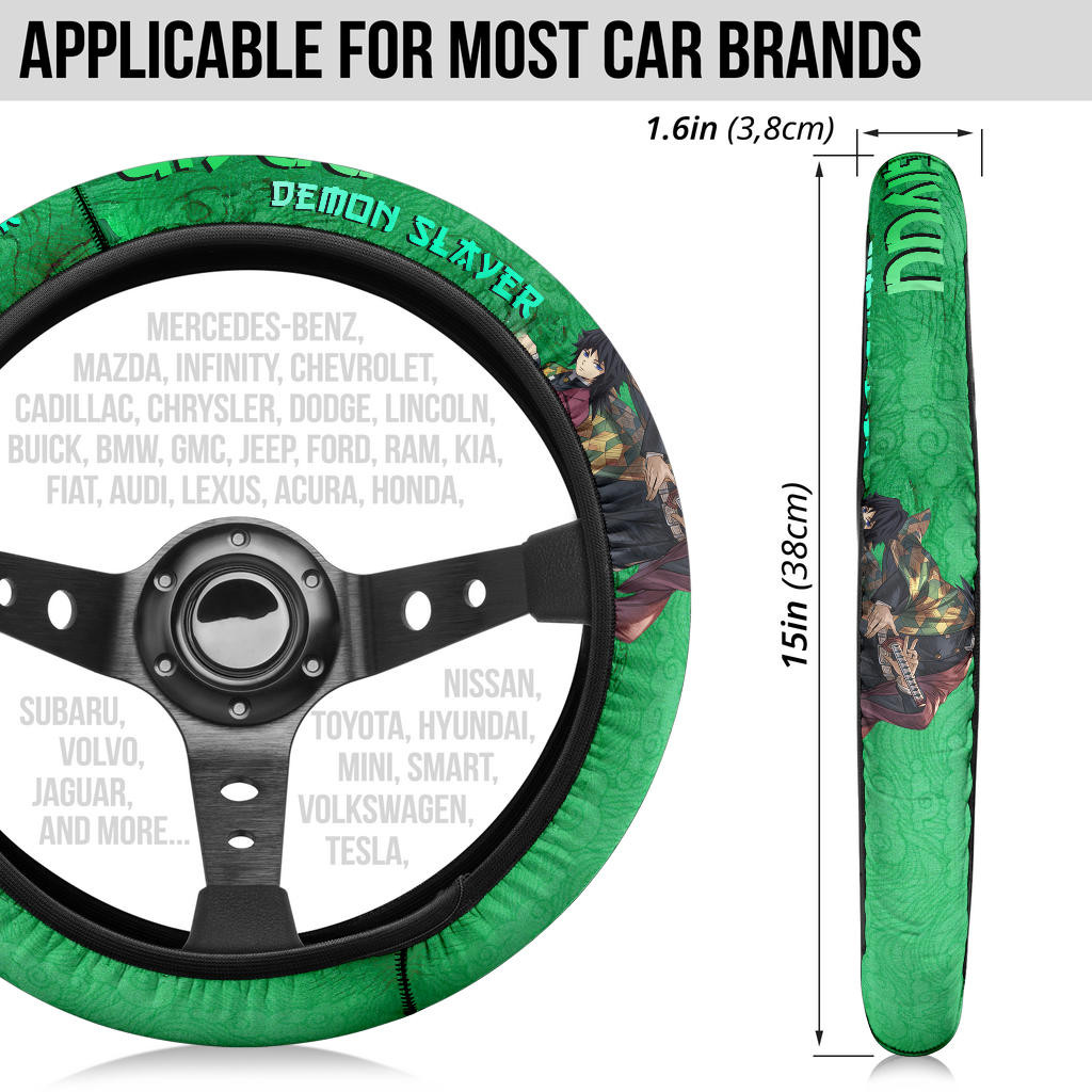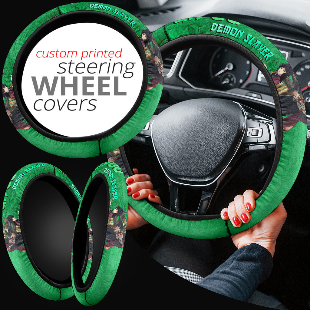 Demon Slayer Giyuu Water Breath Power Green Vintage Theme Steering Wheel Cover