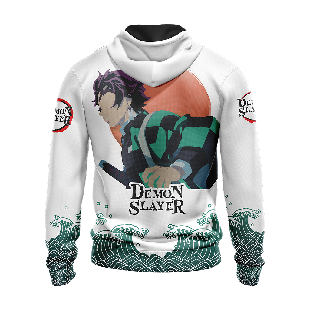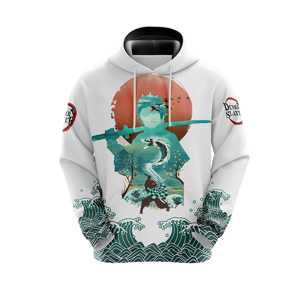 Demon Slayer Hoodie Demon Slayer Tanjirou Kamado Silhouette White Green Hoodie