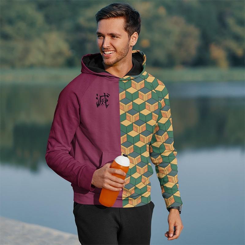 Demon Slayer Hoodie Giyu Tomioka Green Yellow Pattern Costume Hoodie Adult Full Print