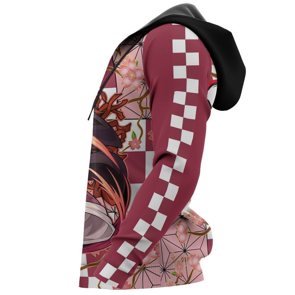 Demon Slayer Hoodie Nezuko Fighting Demon Slayer Logo Pink Hoodie Adult Full Print