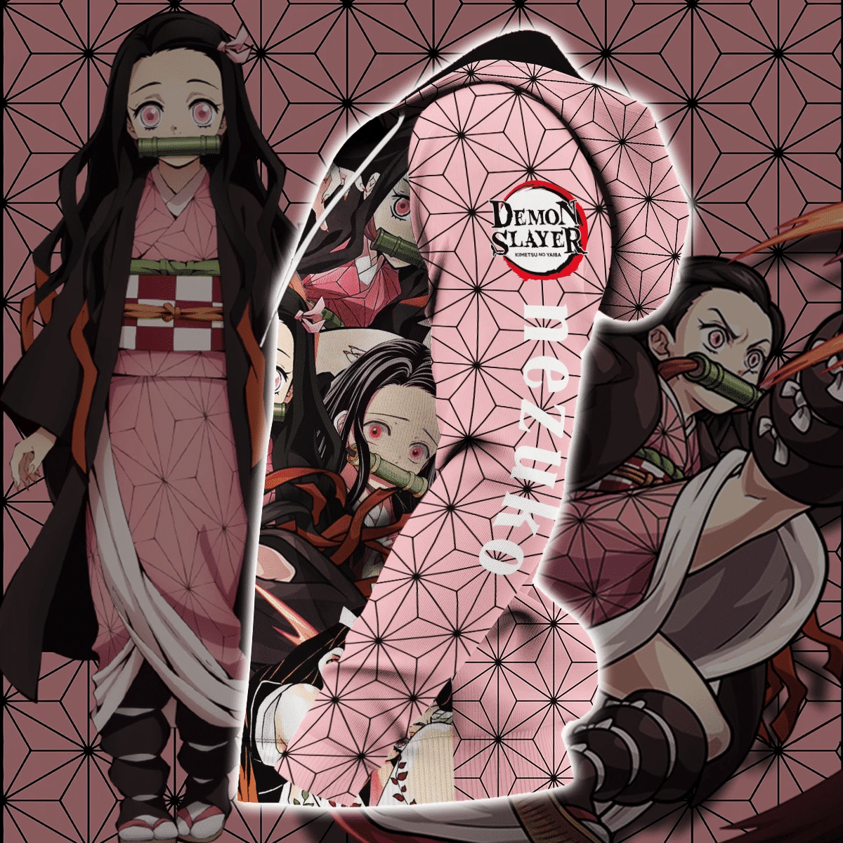Demon Slayer Hoodie Nezuko Kamado Pink Pattern Kimetsu No Yaiba Logo Zip Hoodie Adult Full Print