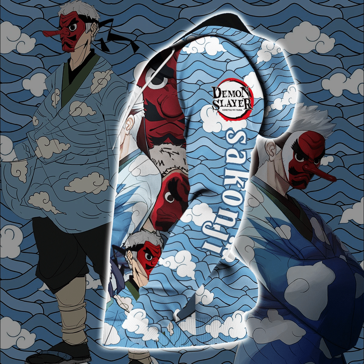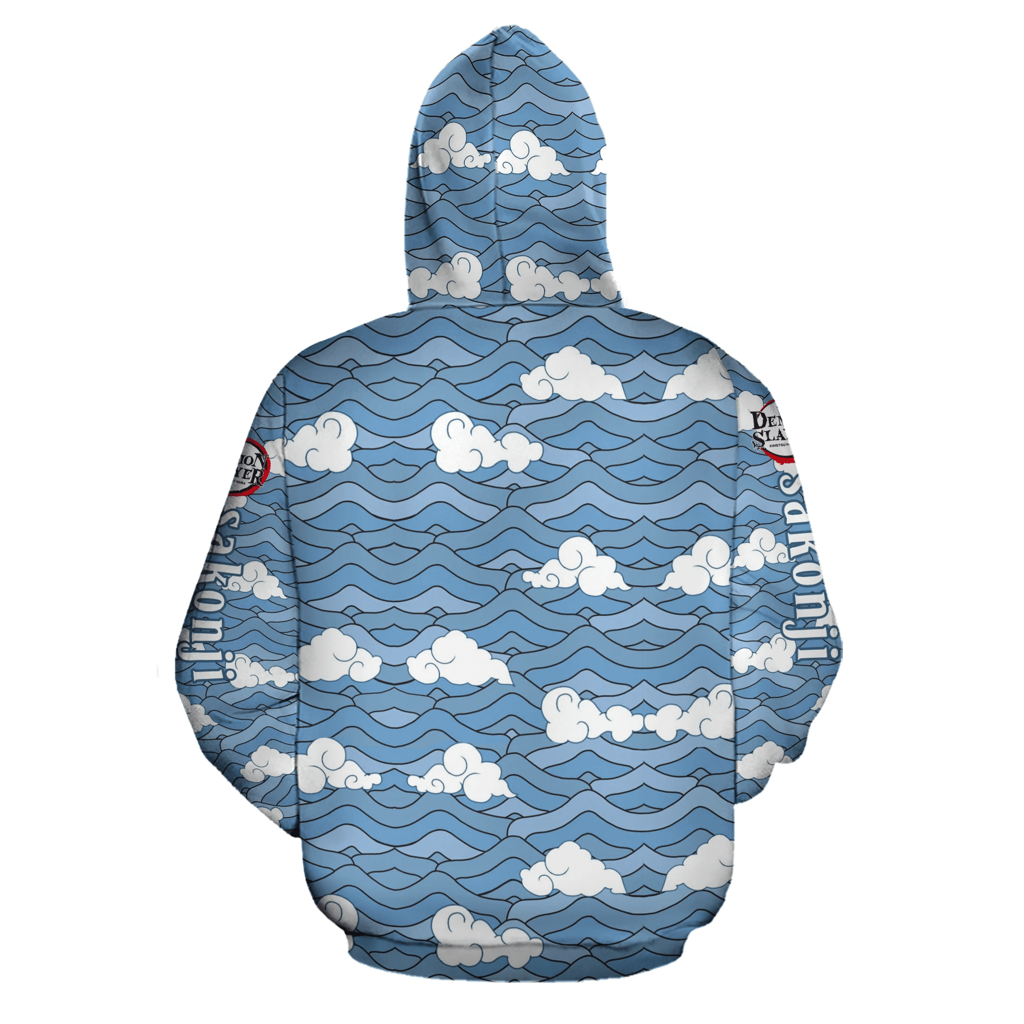 Demon Slayer Hoodie Sakonji Cloud Blue Kimetsu No Yaiba Logo Zip Hoodie Kimetsu No Yaiba Logo Adult Full Print