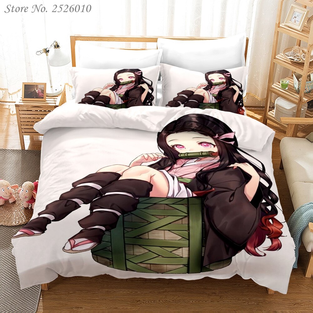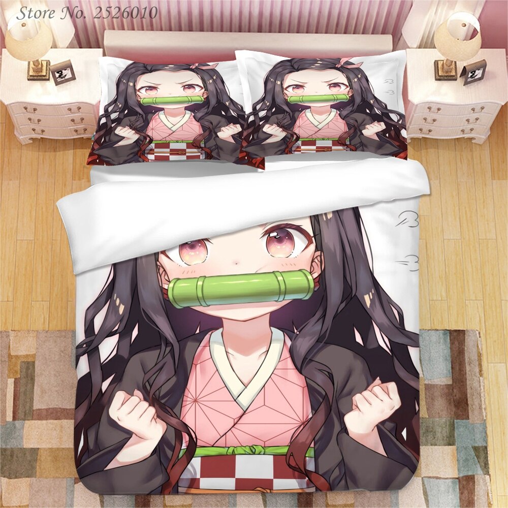 Demon Slayer Kamado Nezuko 3D Printed Bedding Set Duvet Cover Pillow Case Cover Adult Kids Bedclothes Bed Linens 03