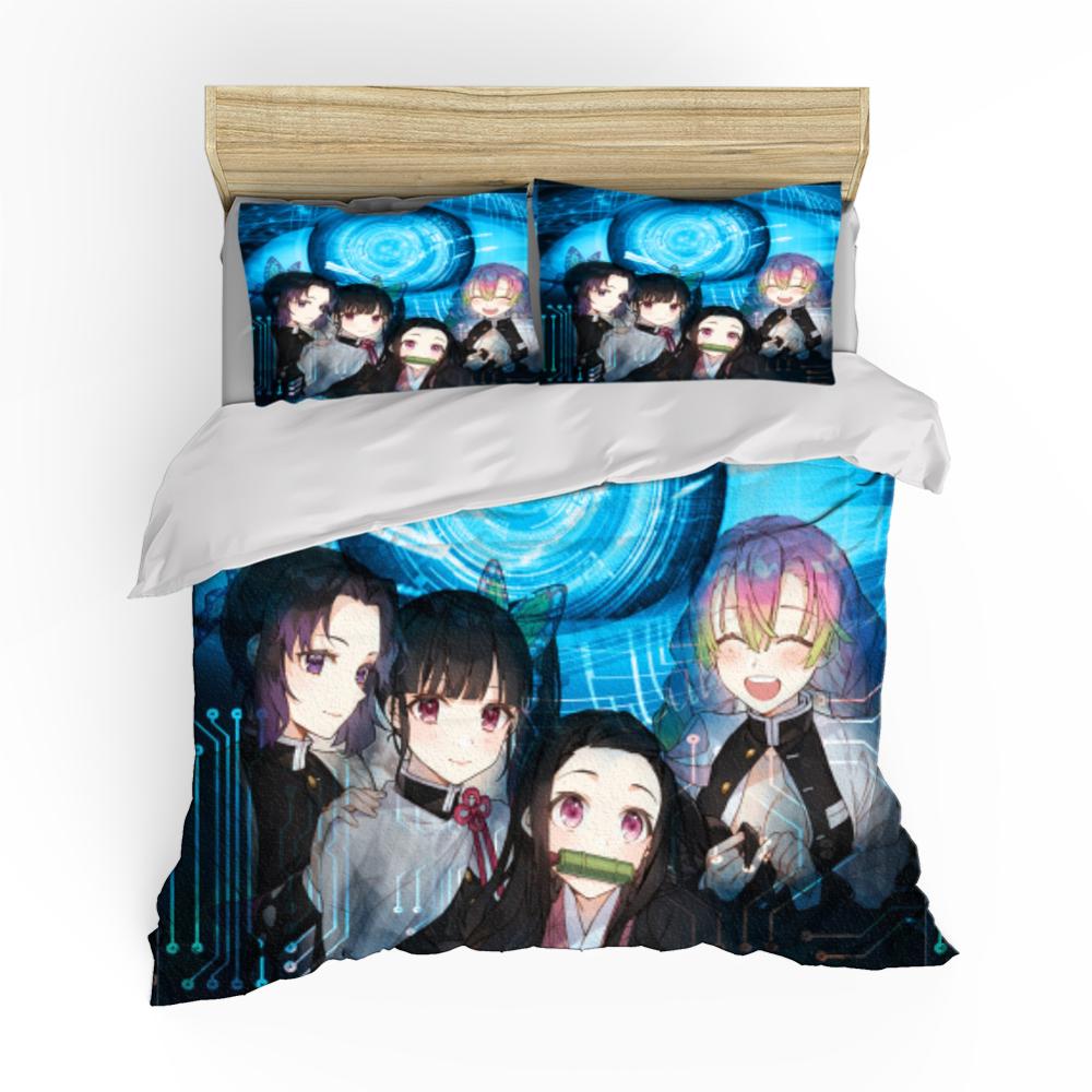 Demon Slayer Kamado Tanjirou Printed Bedding Set 3D Anime Duvet Cover Single Pillowcase Soft Bed Bedclothes