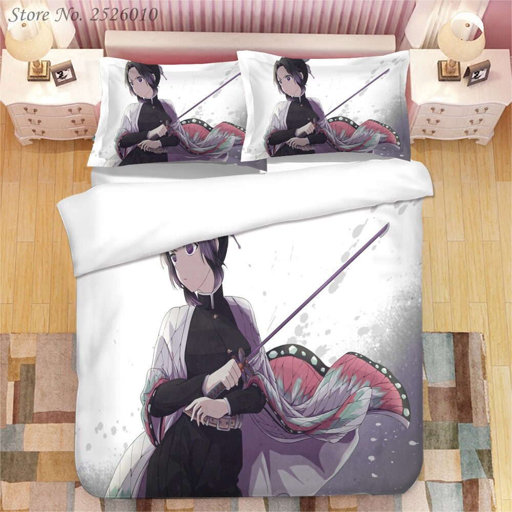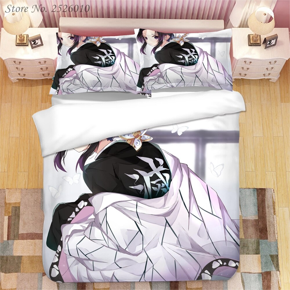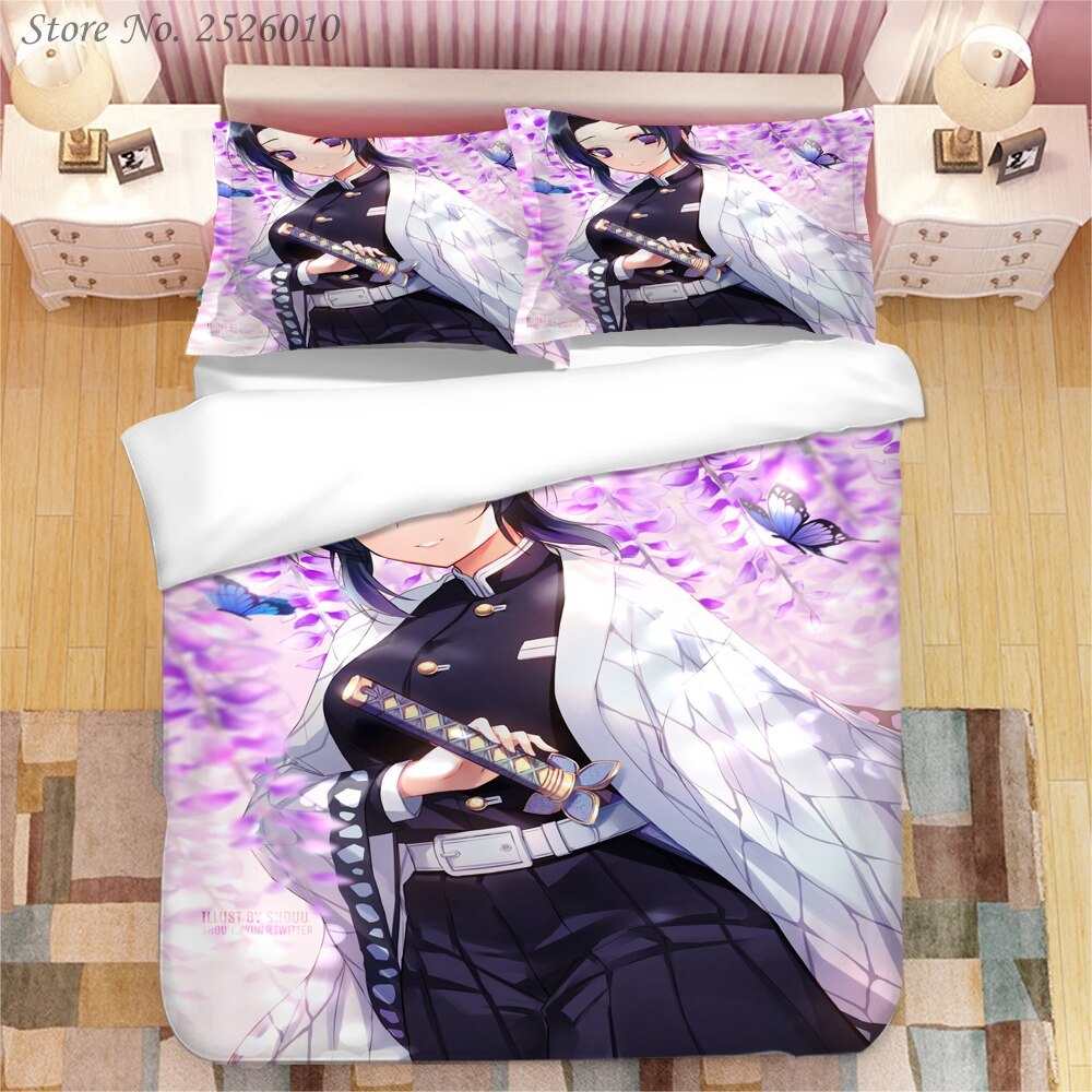 Demon Slayer Kochou Shinobu 3D Printed Bedding Set King Duvet Cover Pillow Case Cover Adult Kids Bedclothes Bed Linens