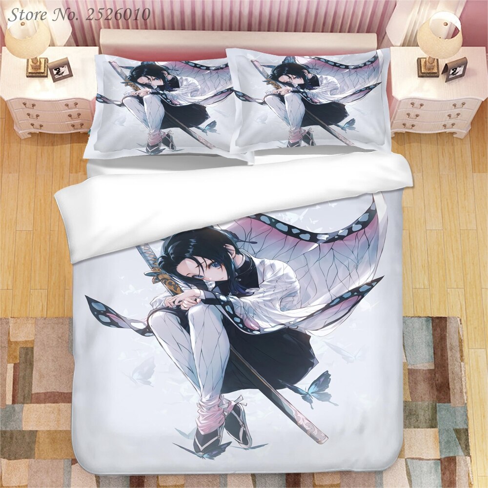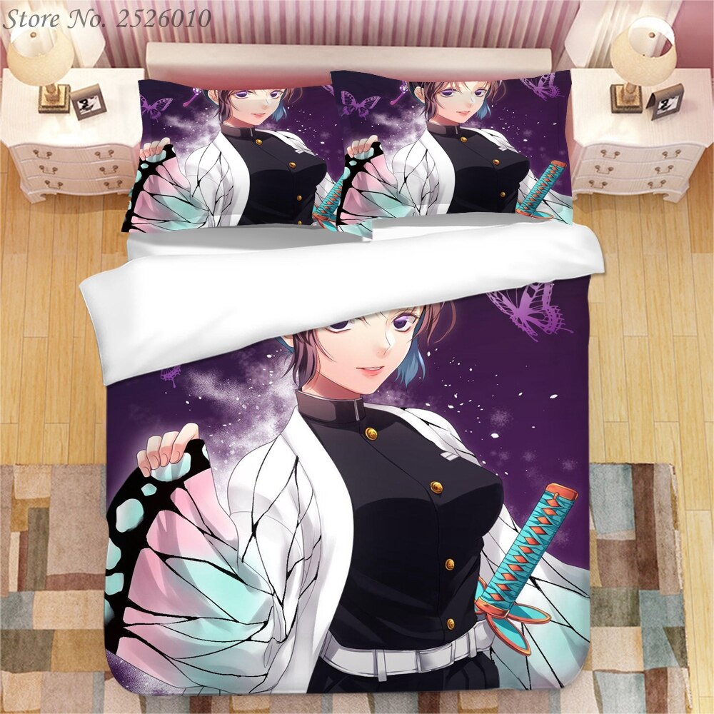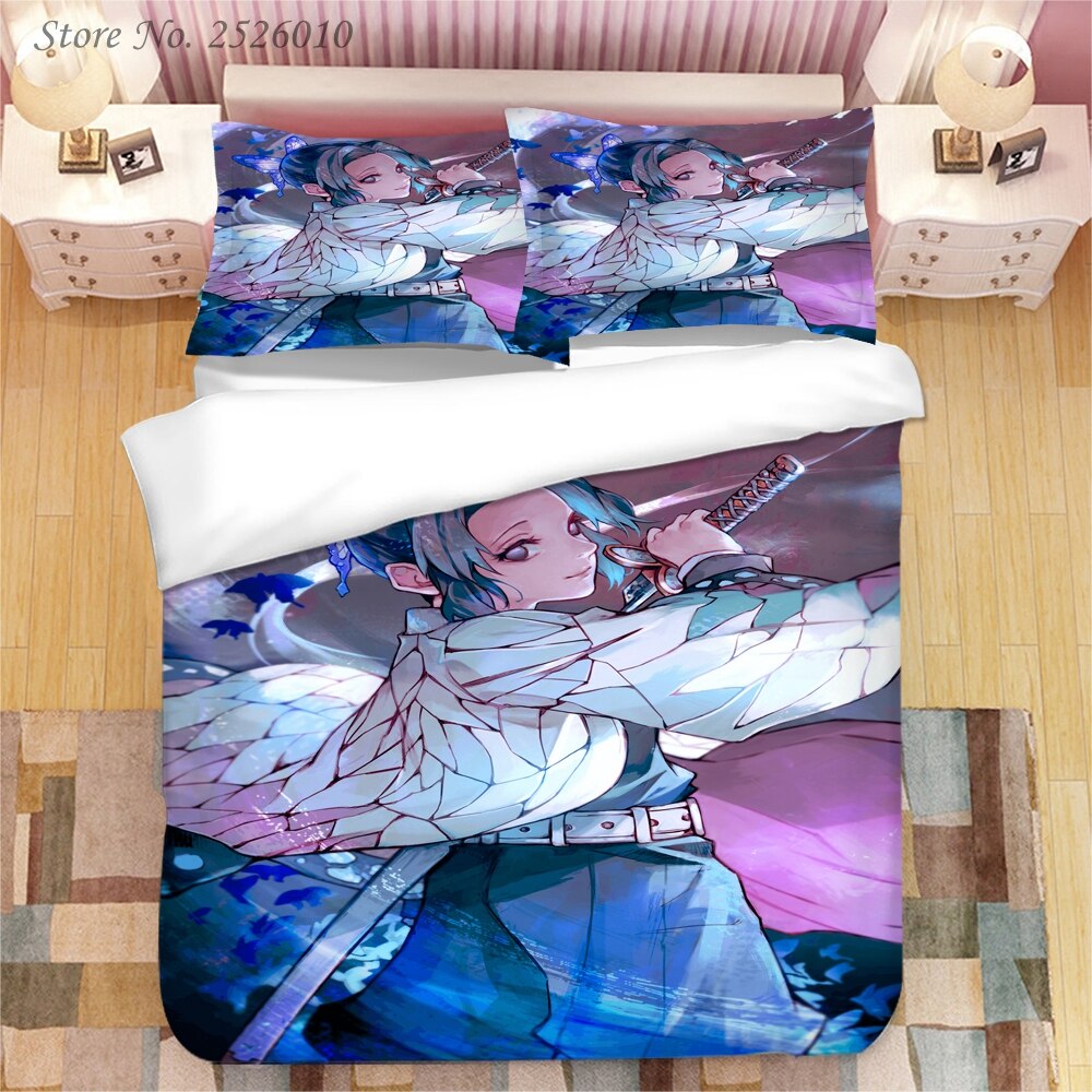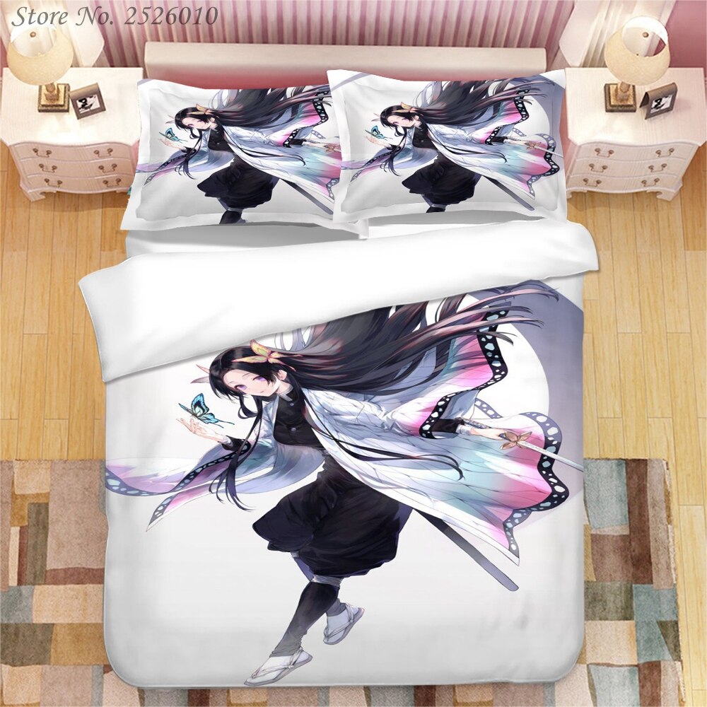 Demon Slayer Kochou Shinobu 3D Printed Bedding Set King Duvet Cover Pillow Case Cover Adult Kids Bedclothes Bed Linens