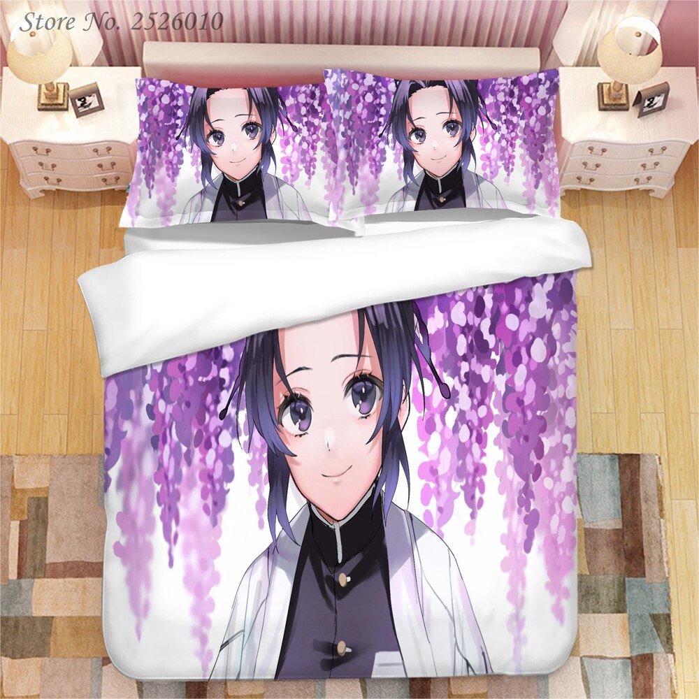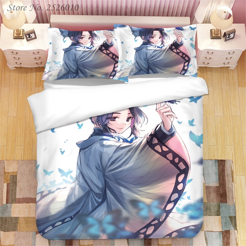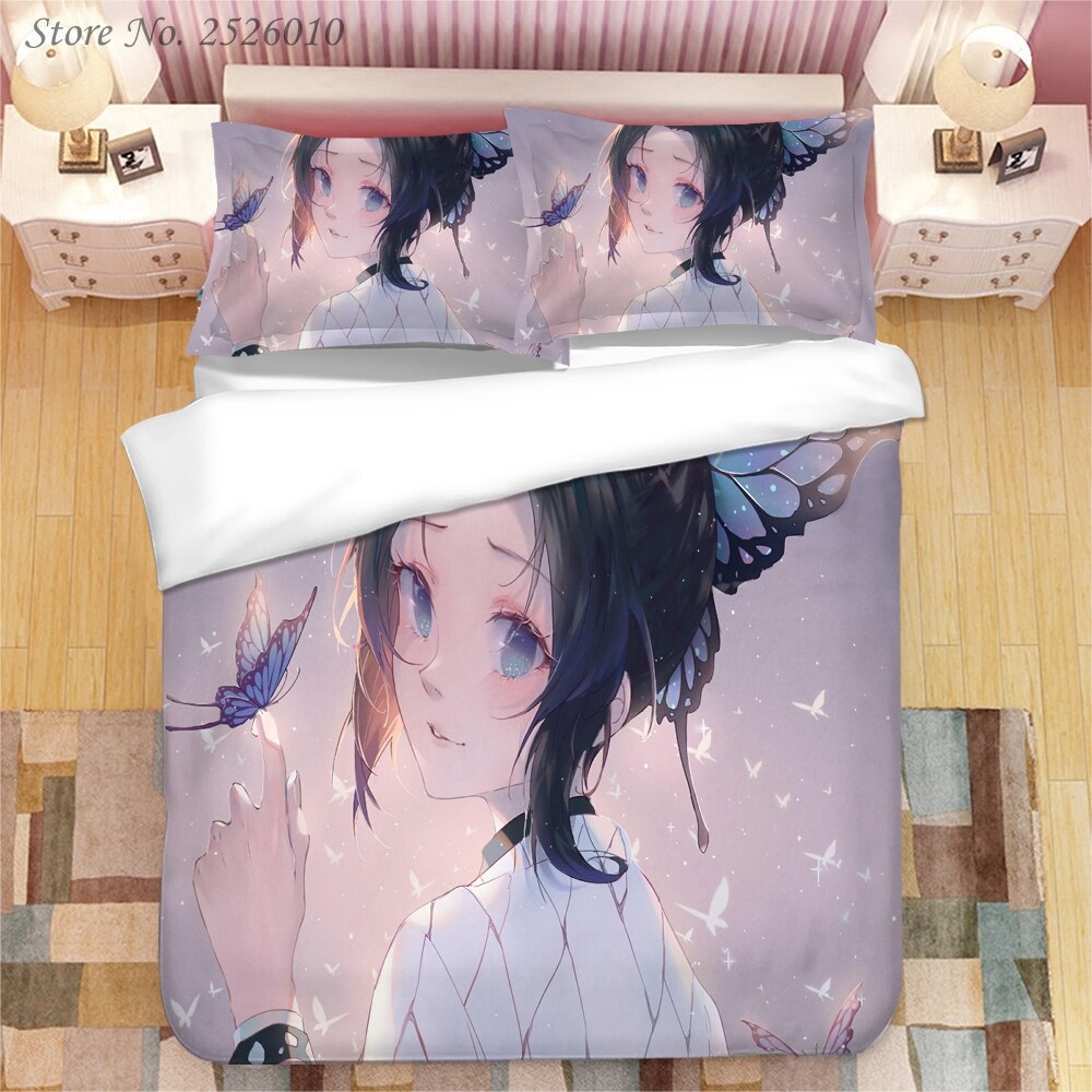 Demon Slayer Kochou Shinobu 3D Printed Bedding Set King Duvet Cover Pillow Case Cover Bedclothes Bed Linens 03