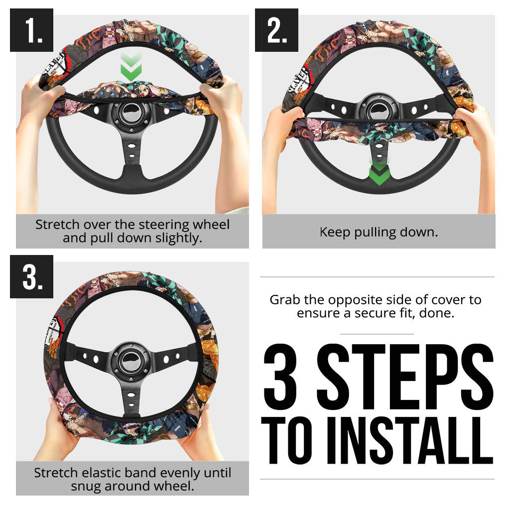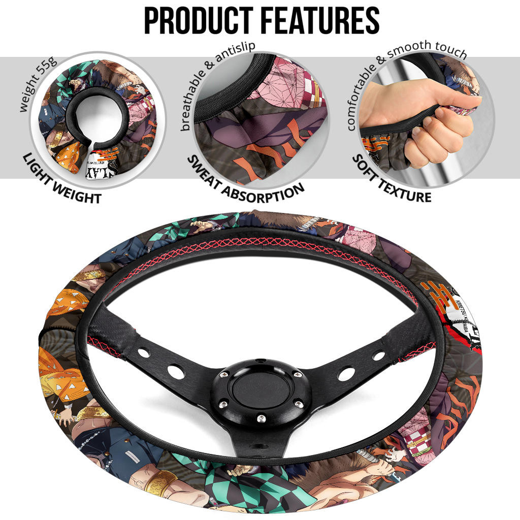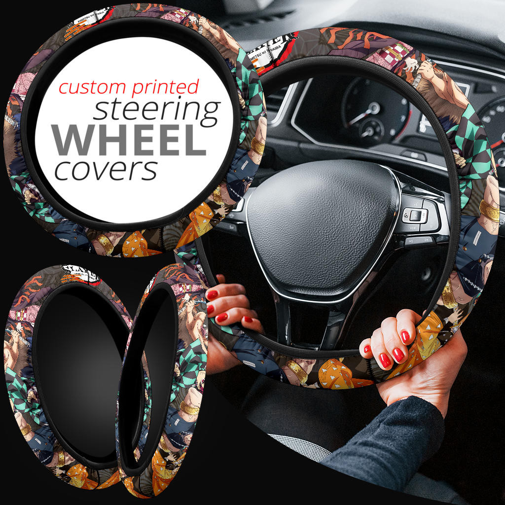 Style: Steering Wheel Cover - Demon Slayer Anime Steering Wheel Cover Kimetsu no Yaiba Poster Black Steering Wheel Cover NA020807