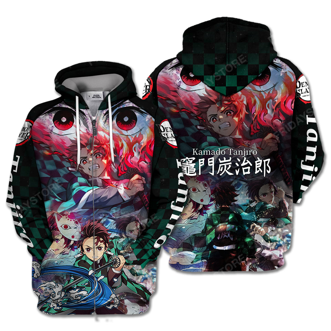 Demon Slayer T Shirt Kamado Tanjiro 3D Black Green Hoodie Demon Slayer Hoodie