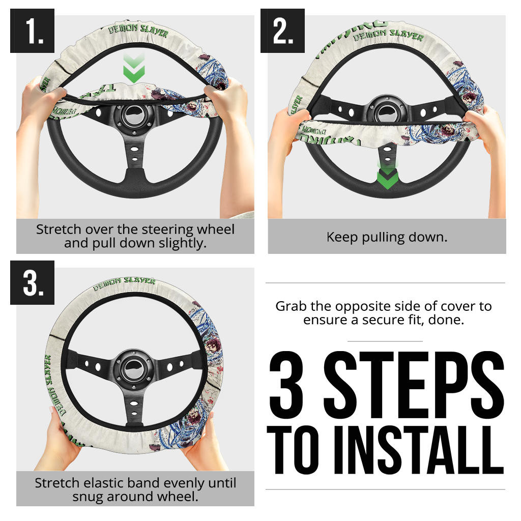 Demon Slayer Tanjiro Water Breath Power Fighting Moments Steering Wheel Cover