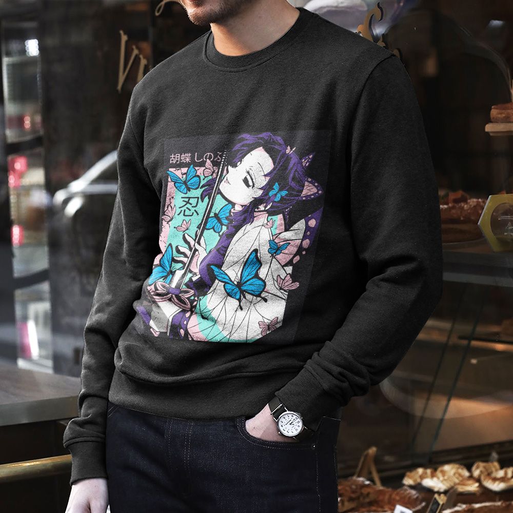 Demon Slayer Unisex All Over Print Cotton Sweatshirt, Shinobu Kocho Sweatshirt